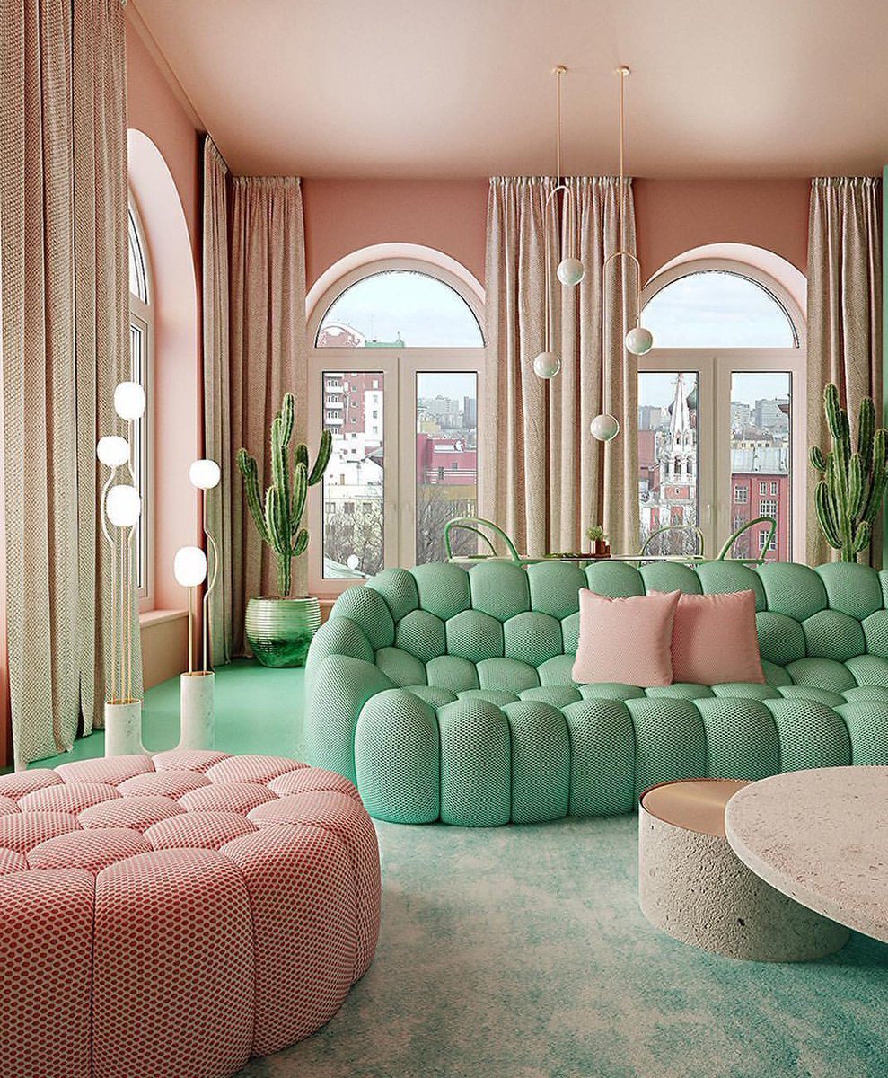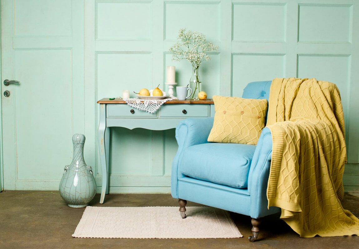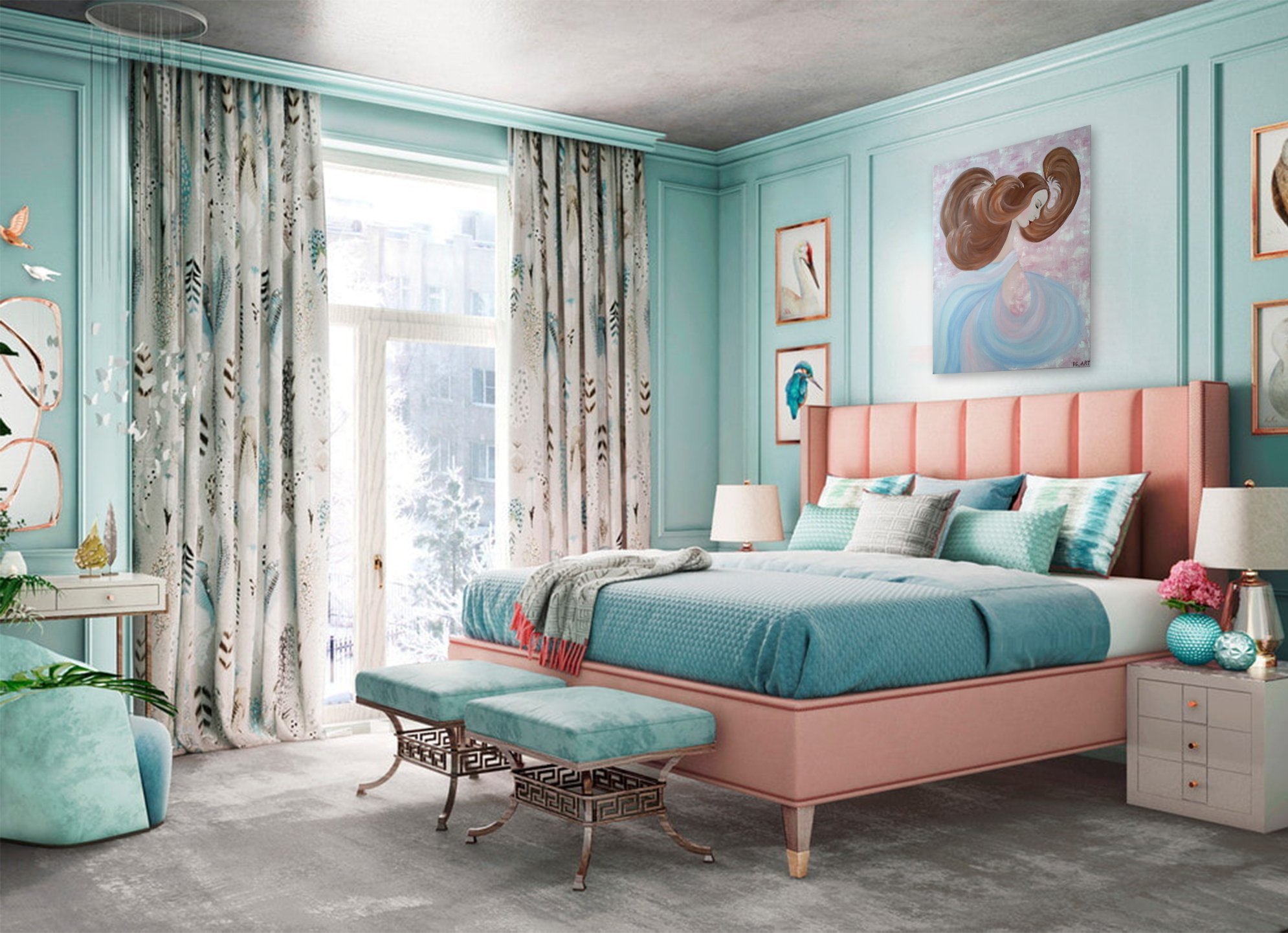 Интерьер в скандинавском стиле в бирюзовых тонах