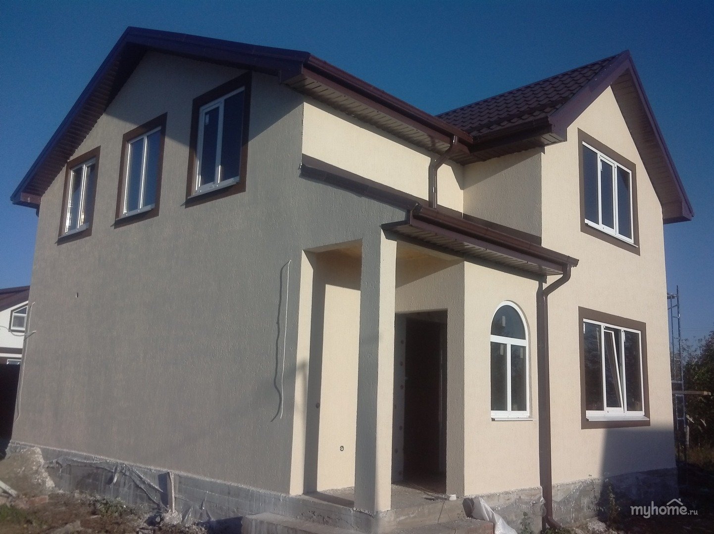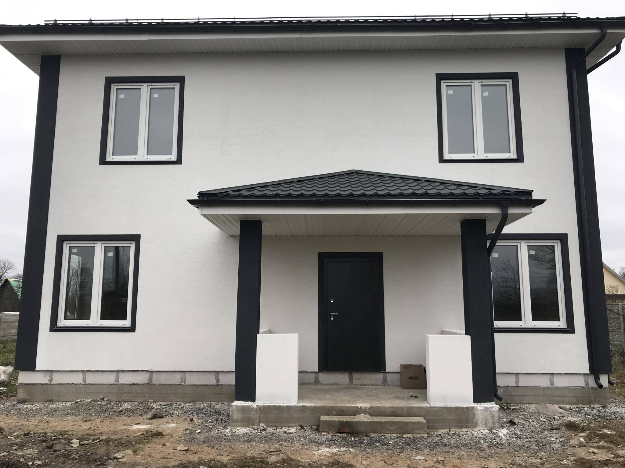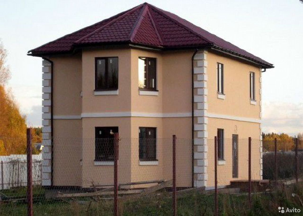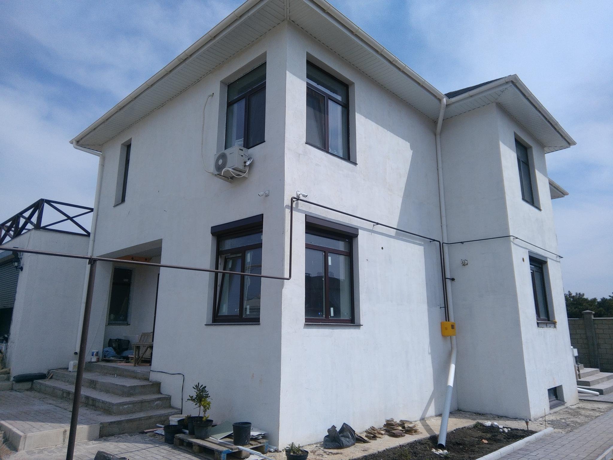 Оштукатуренный двухэтажный дом