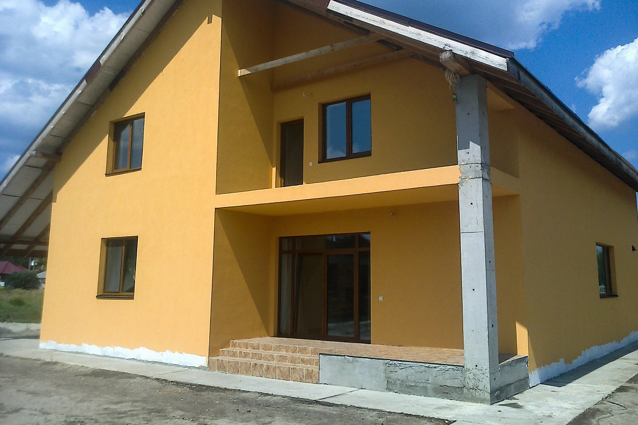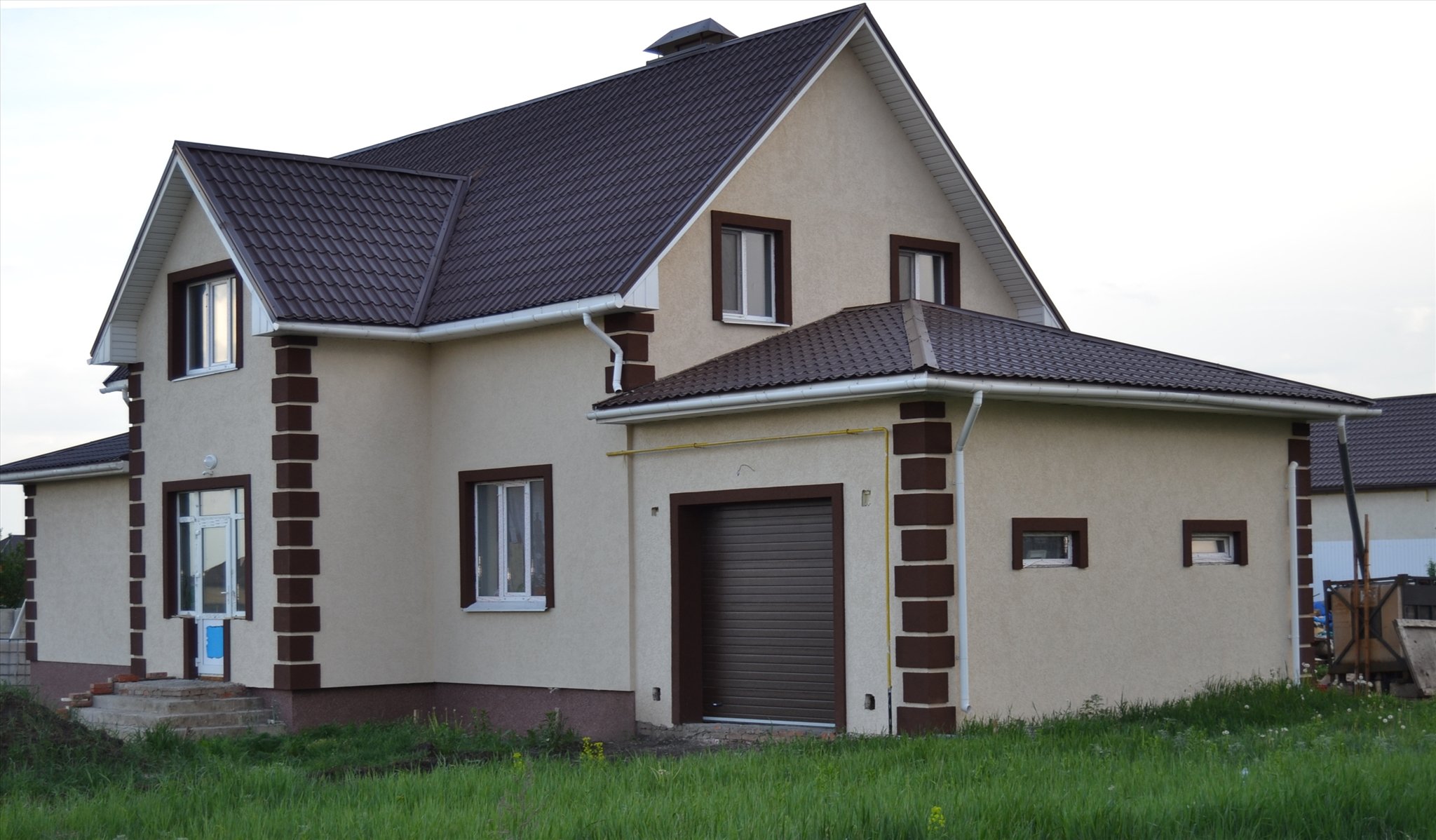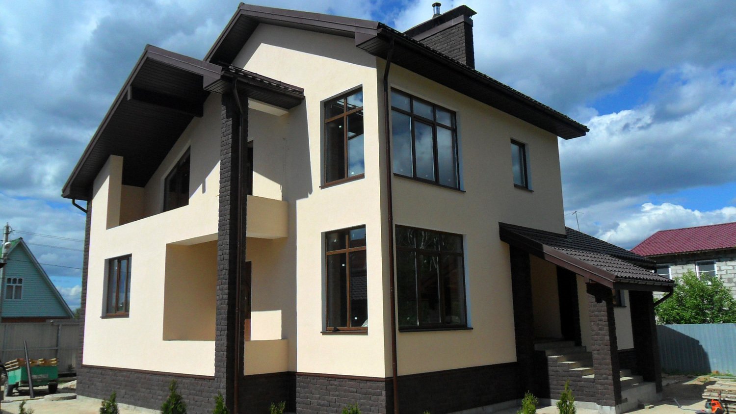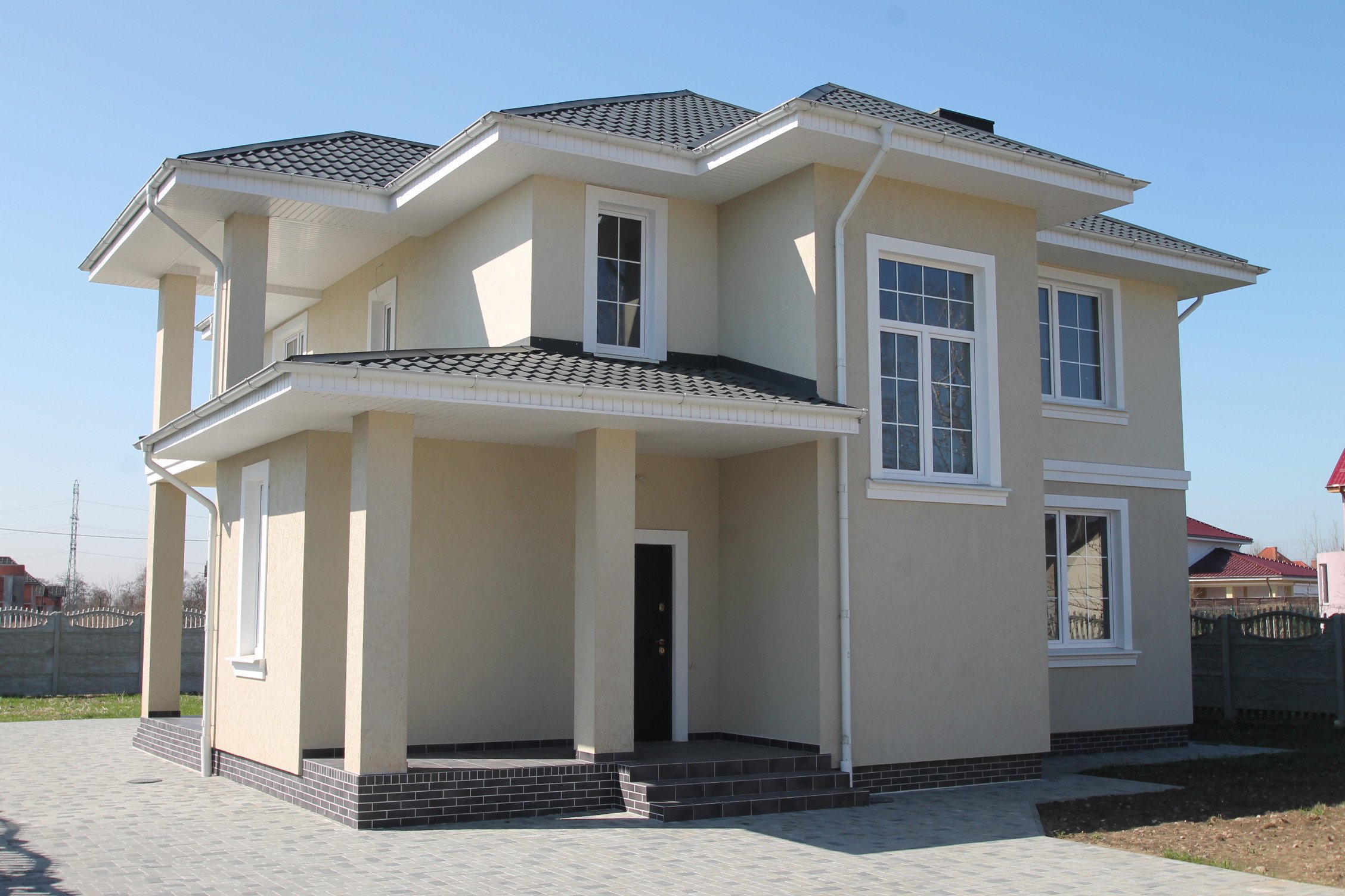 Оштукатуренный двухэтажный дом