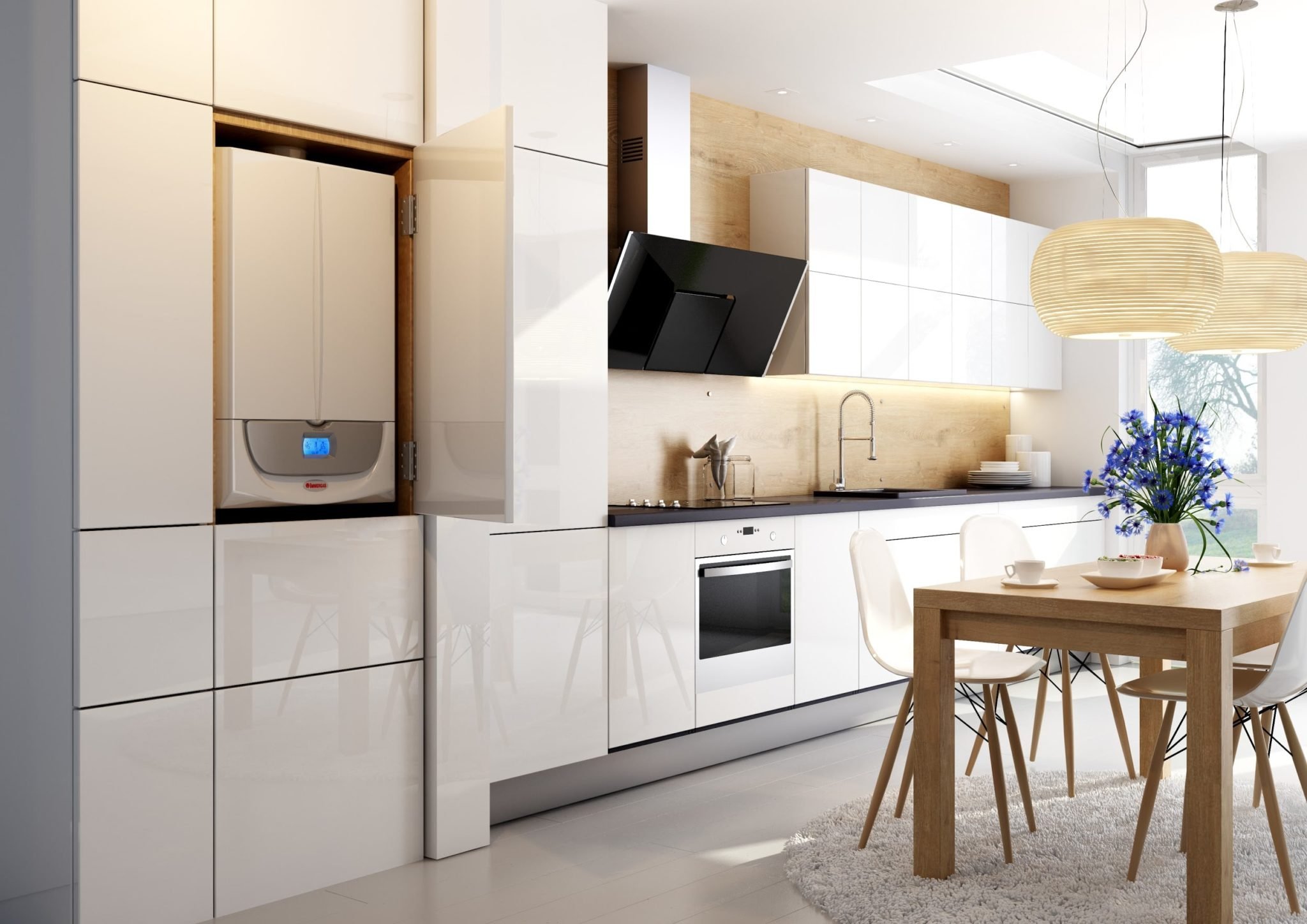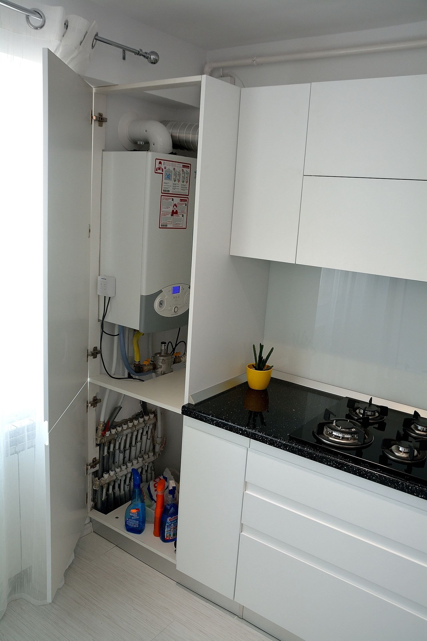 Интерьер кухни 5м.кв с газовой котлом навесным155на2м