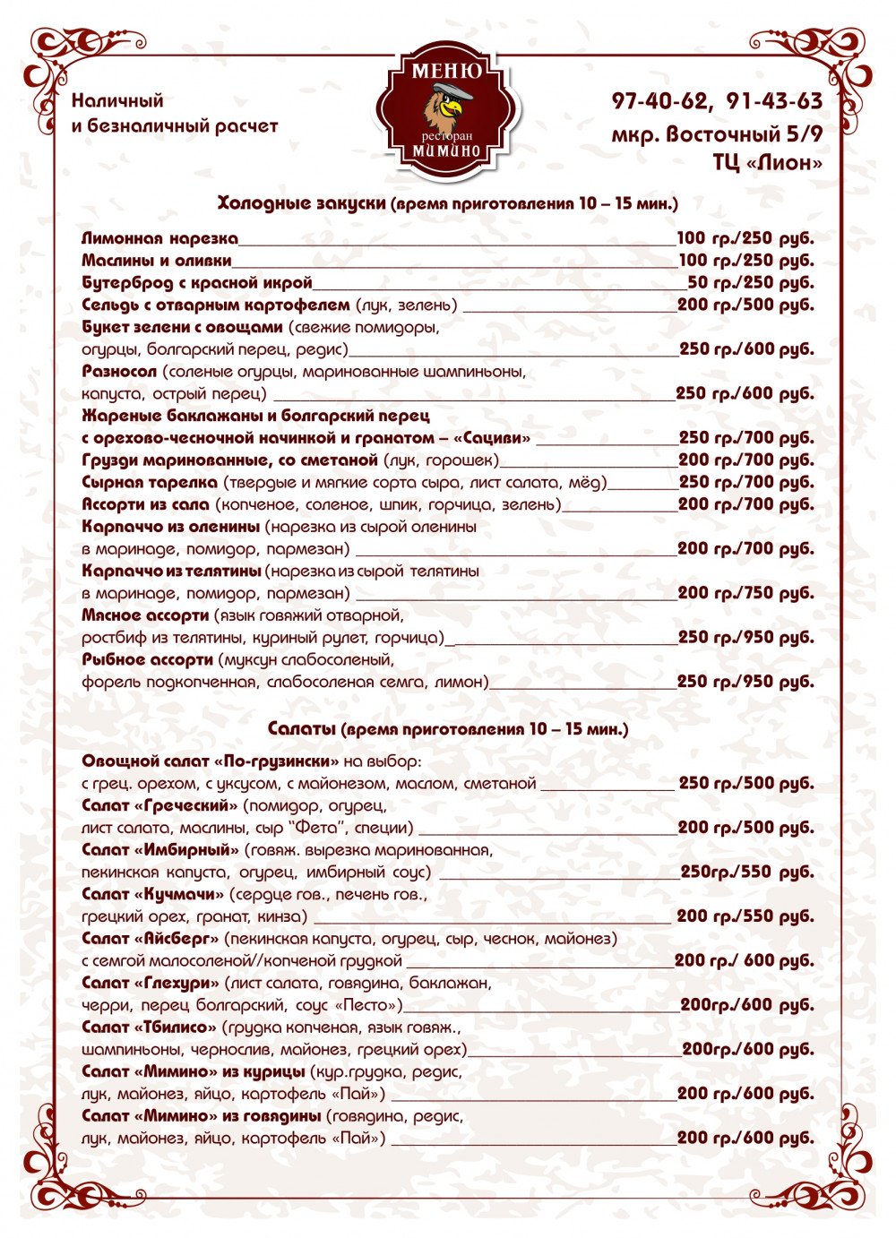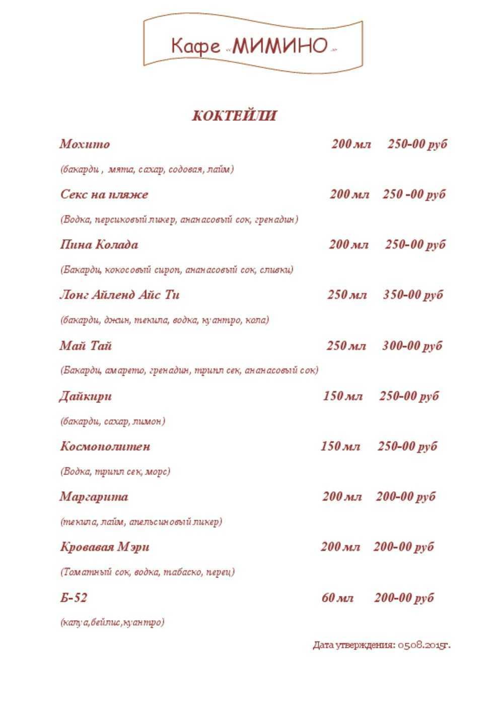 Мимино кафе меню