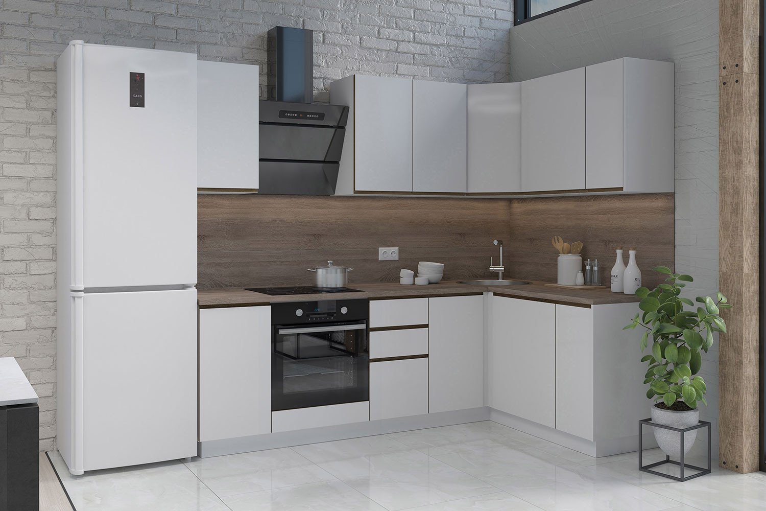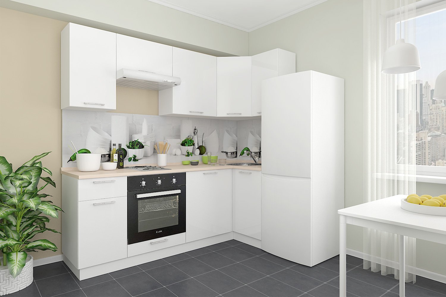 Кухня хофф Сити белый глянец