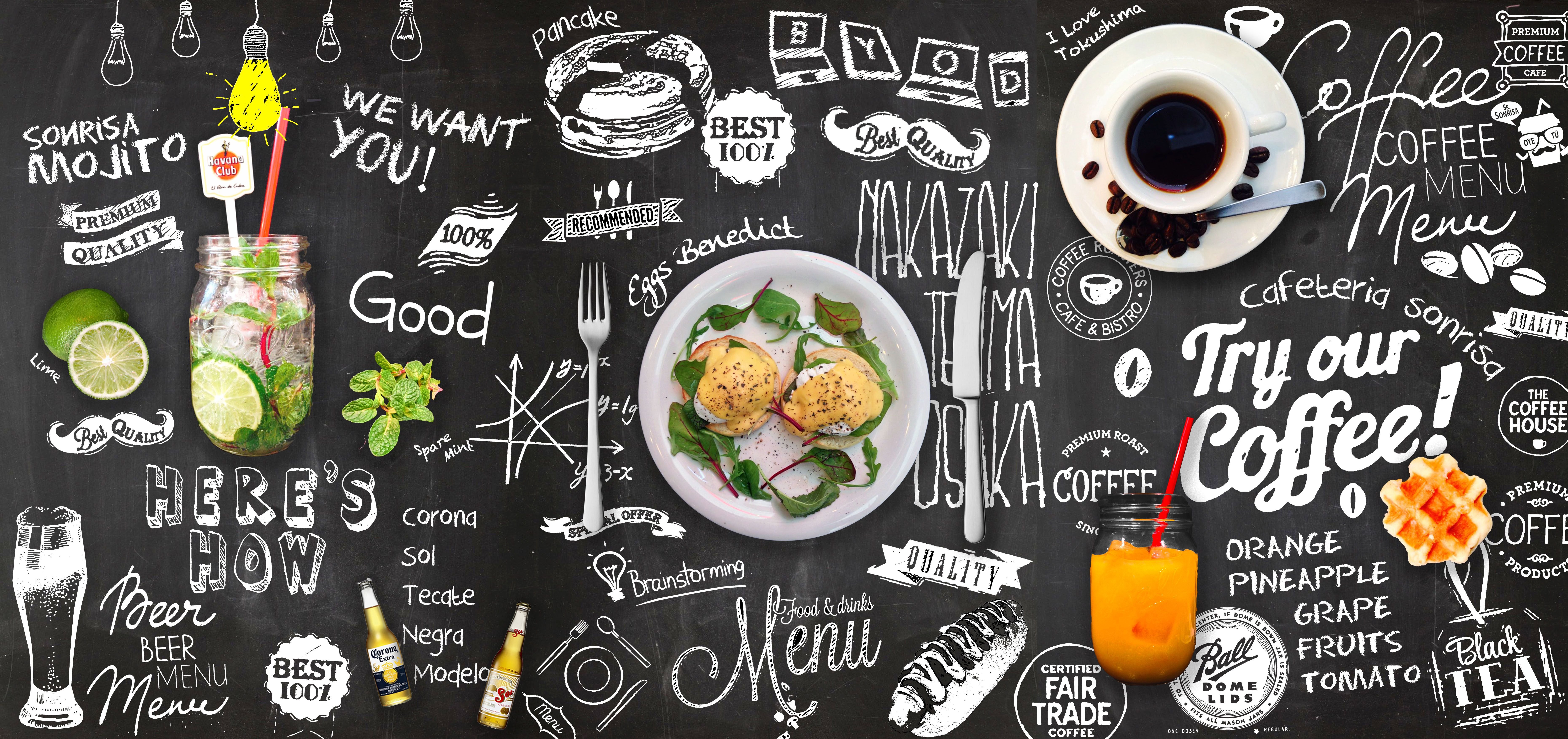 Меню кофейни на черном фоне