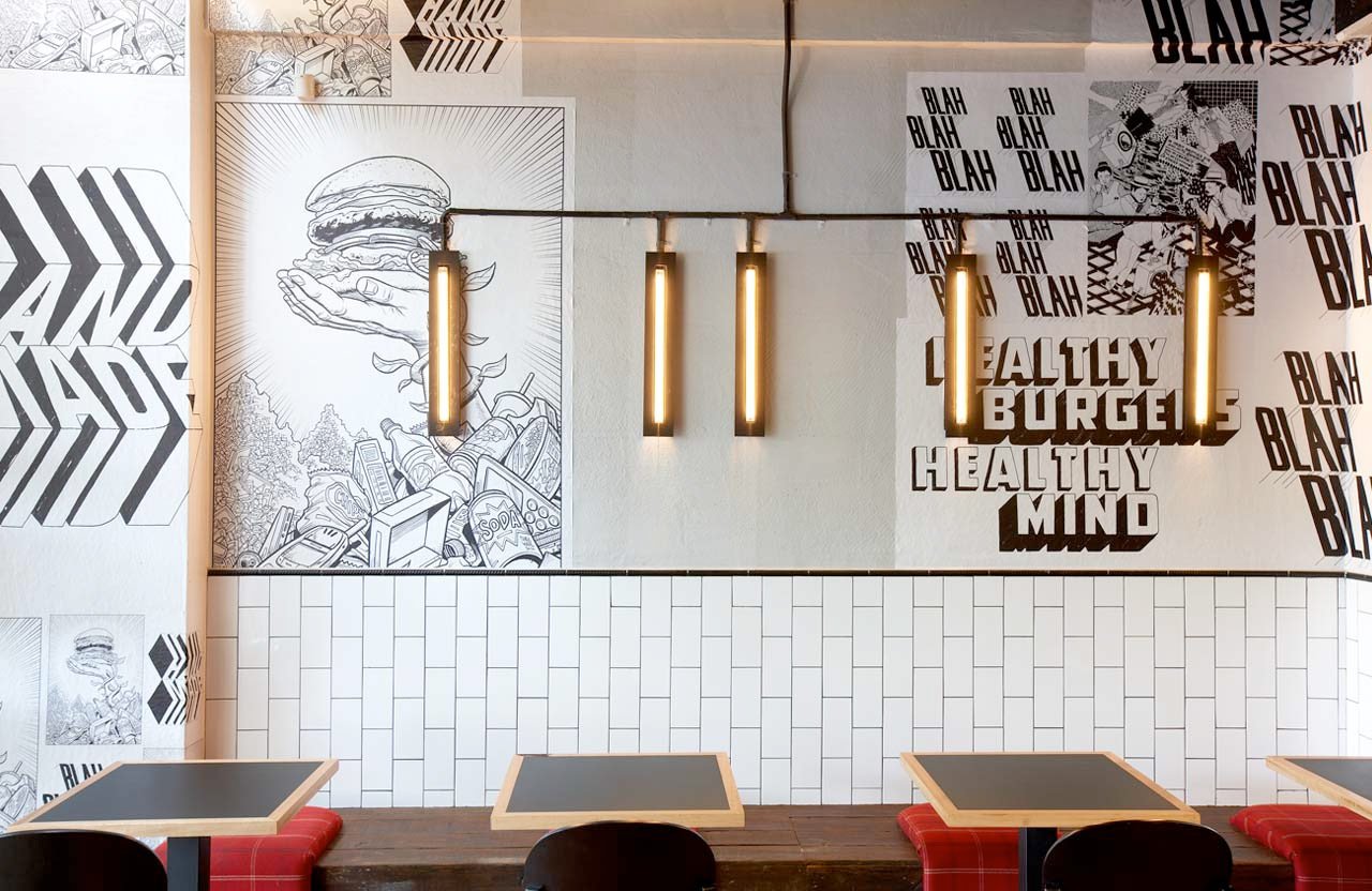Интерьеры кафе с надписями на стенах