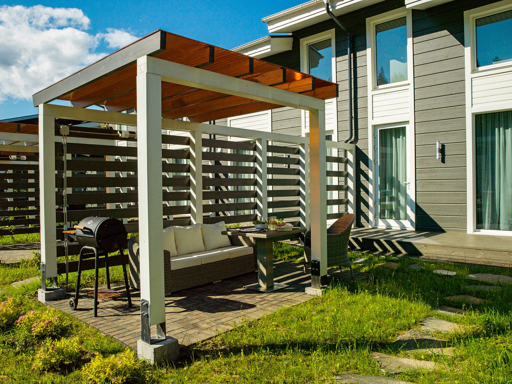 Пергола патио с мангалом