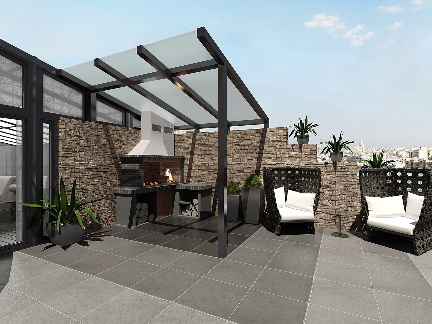 Терраса на крыше барбекю
