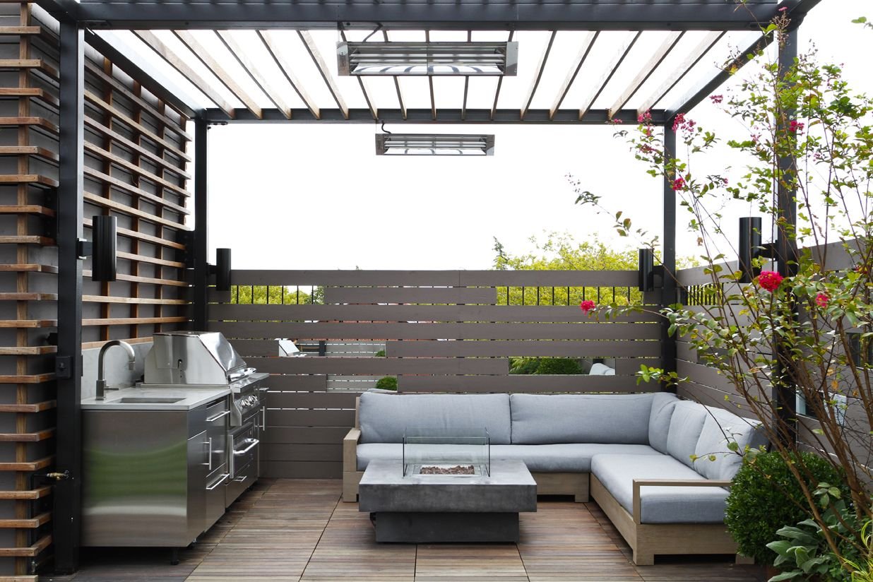 Терраса с барбекю в современном стиле