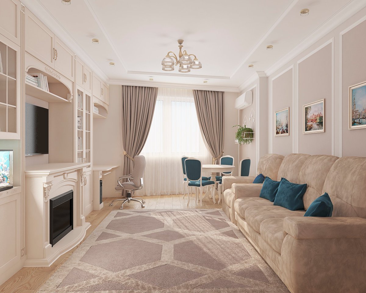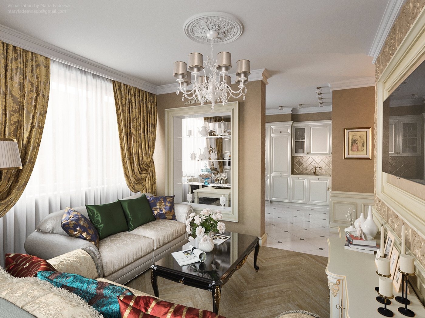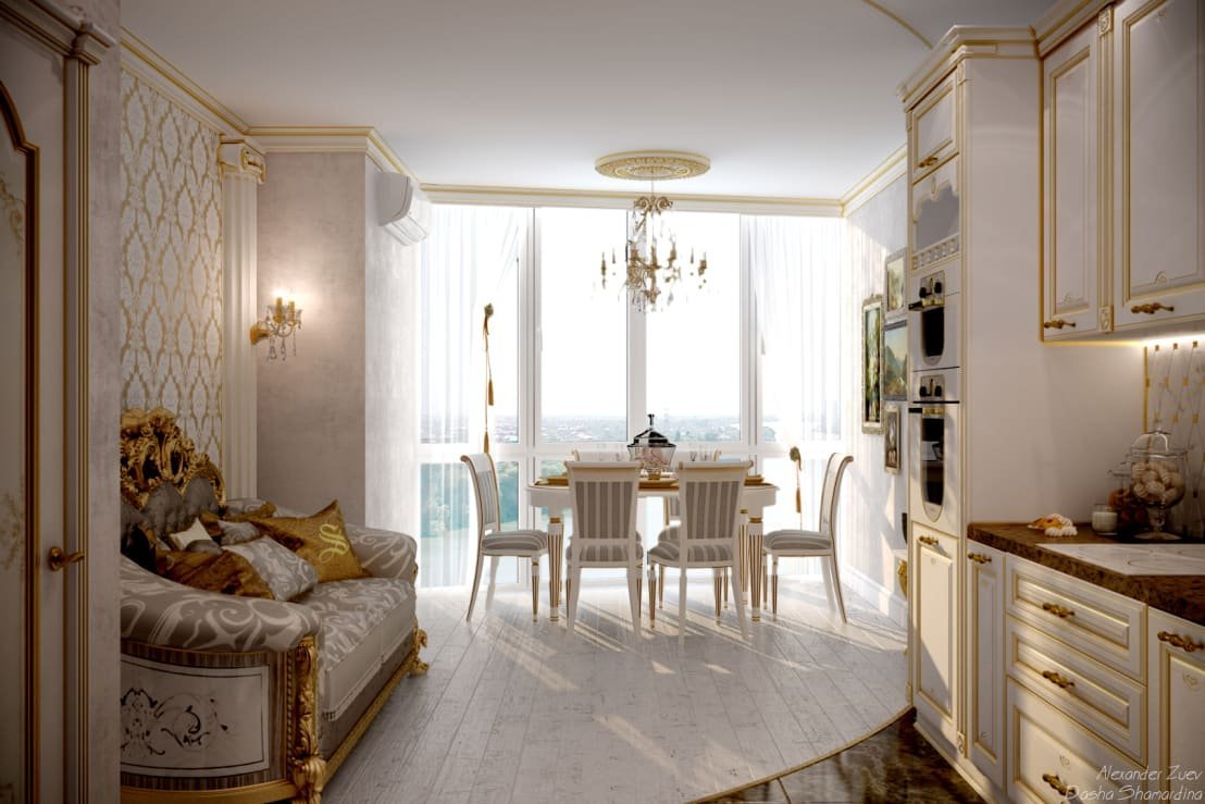 Кухня-гостиная в стиле Неоклассика 26 кв.м