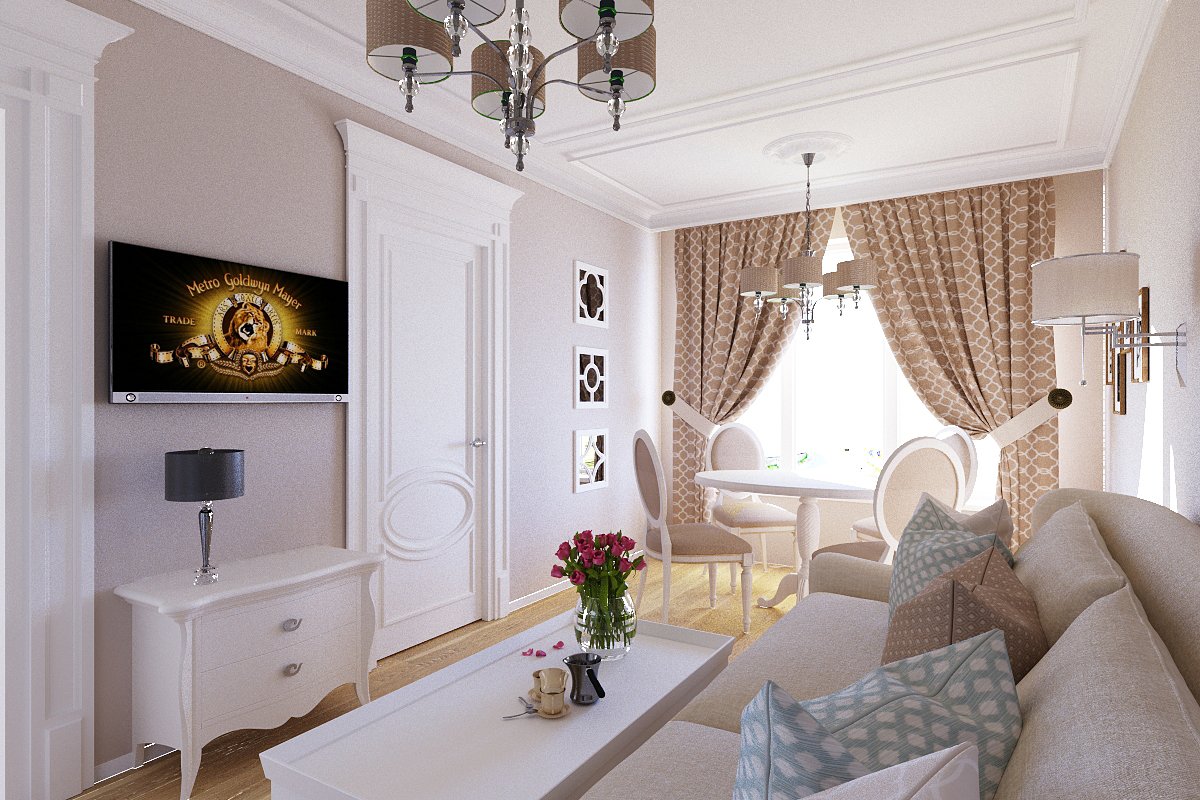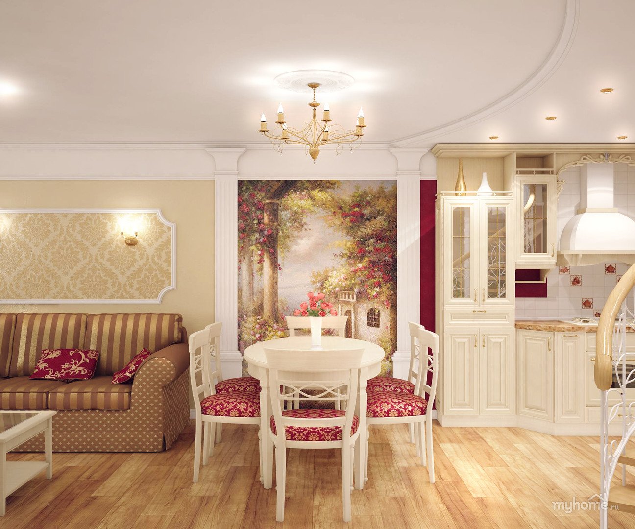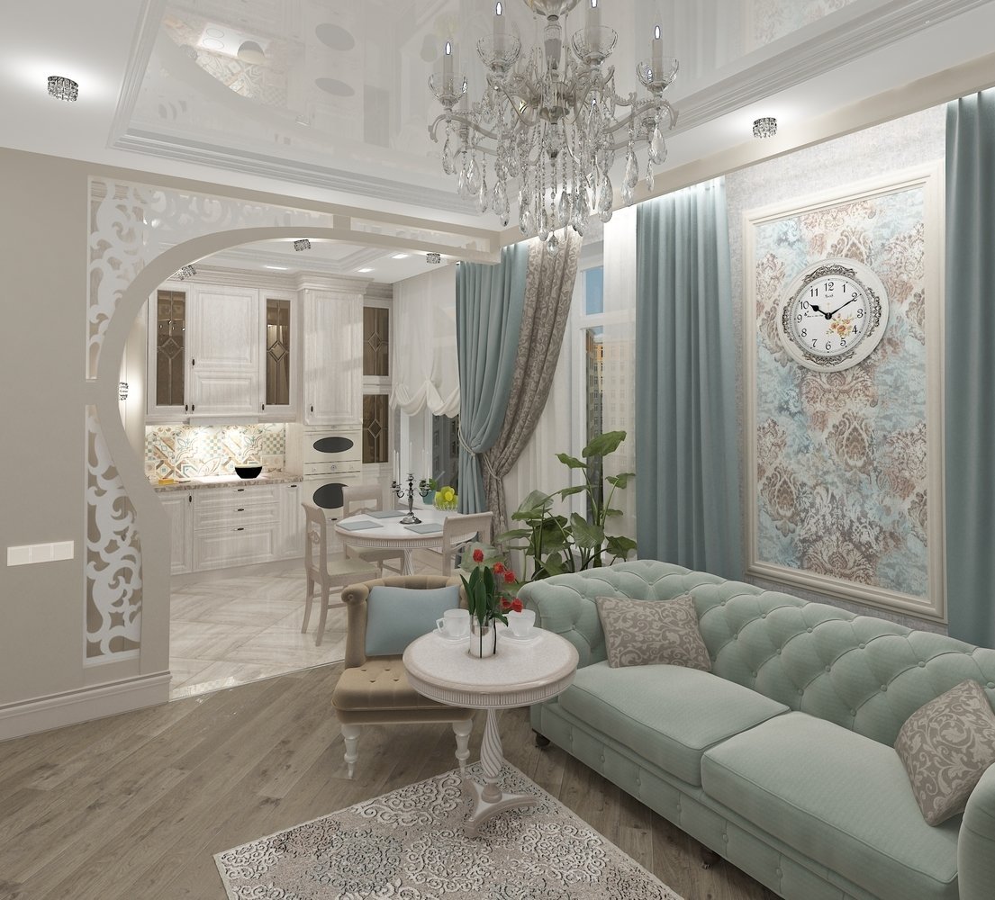 Кухня-гостиная в стиле Неоклассика 26 кв.м