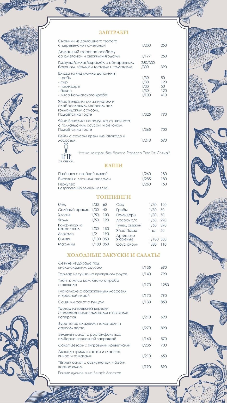 Меню морского ресторана
