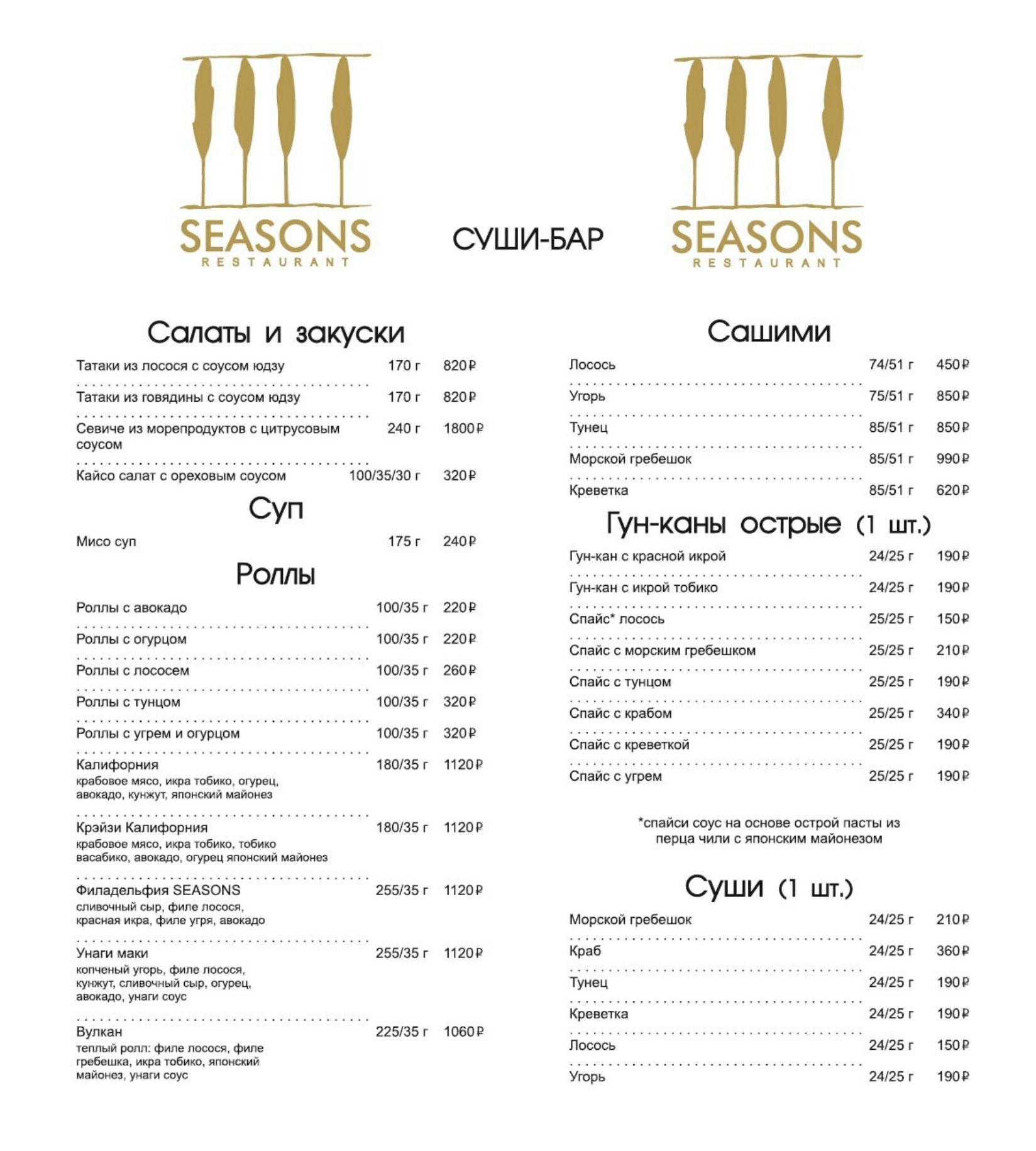 Seasons меню ресторана