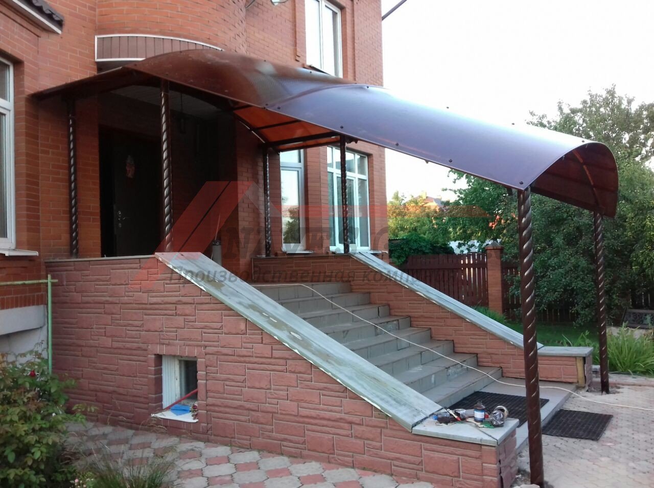 Навес над крыльцом из поликарбоната