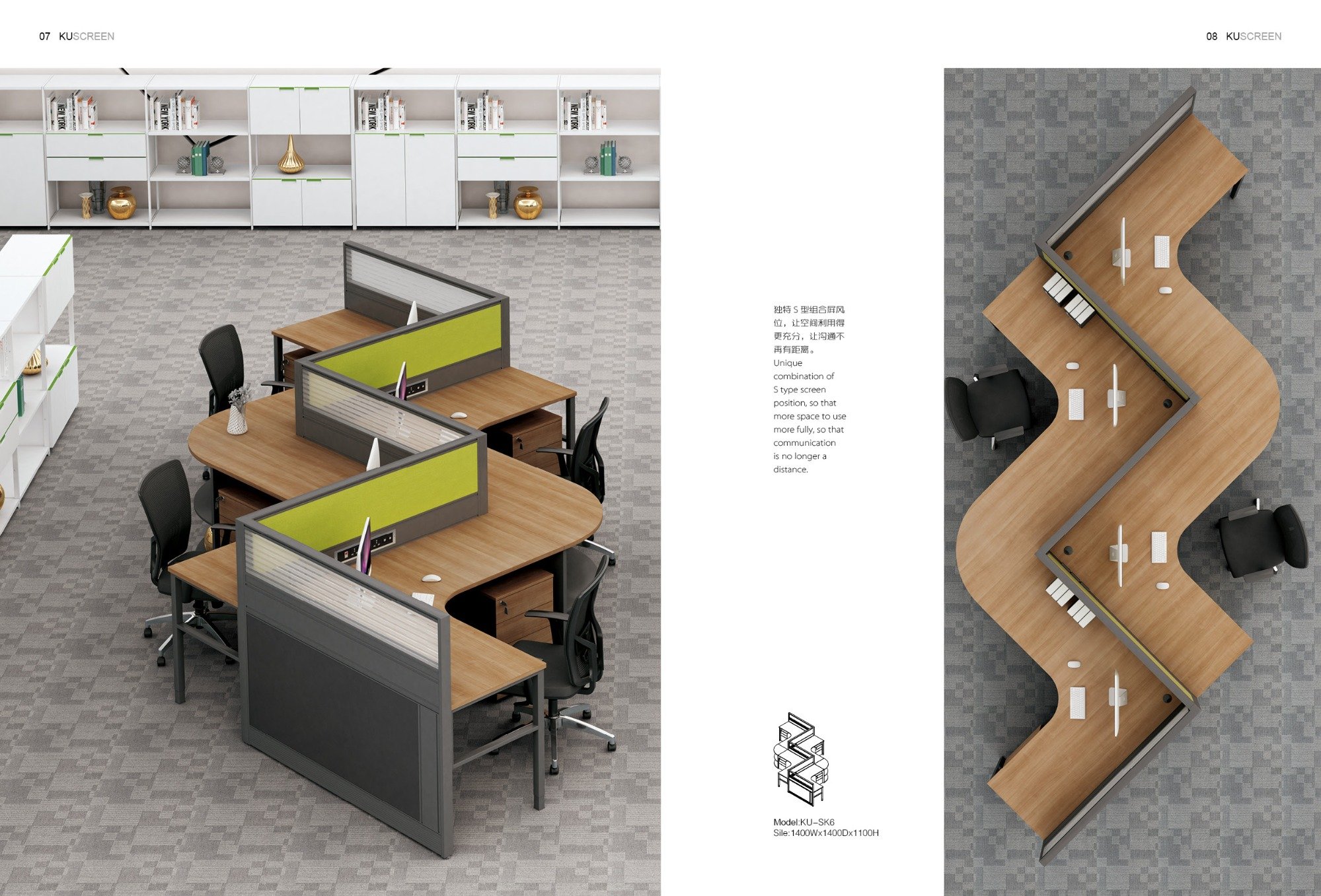 Стол офисный диком п1 с приставкой и экраном (ширина 1800)
