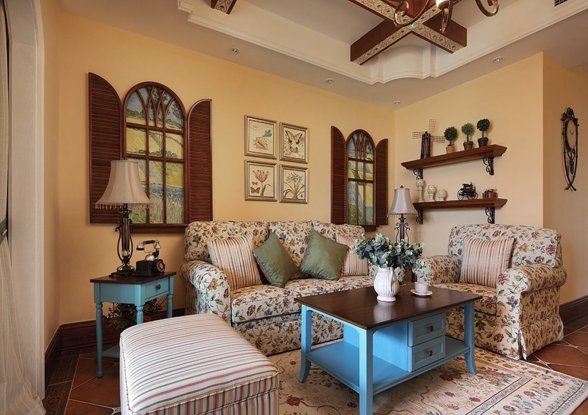 Фазенда гостиная в стилифранц Кантри