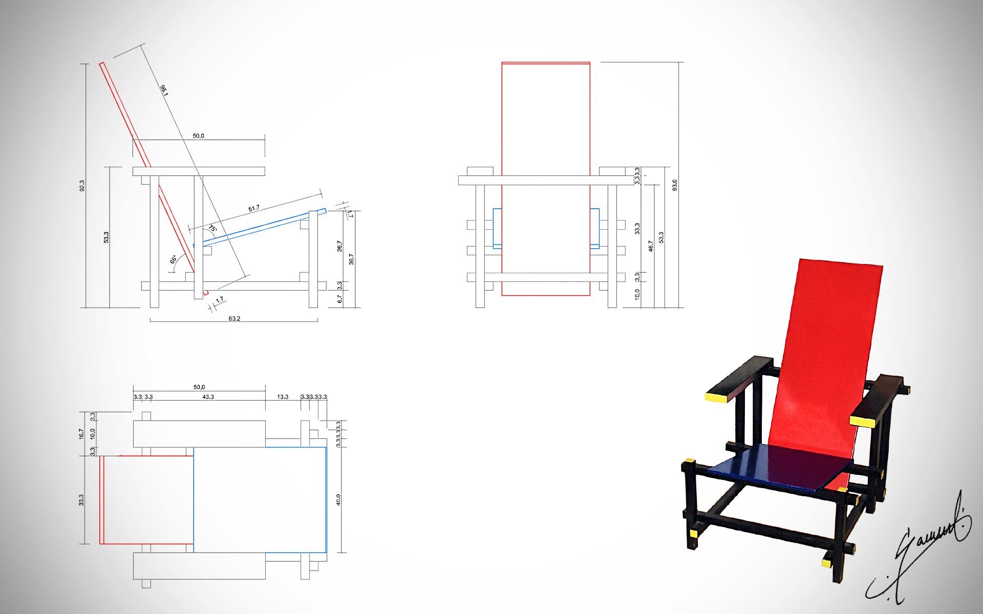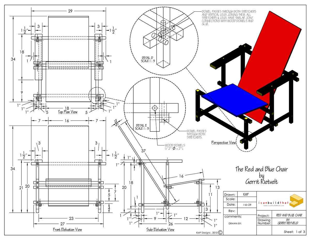 Стул Ритвельда чертежи