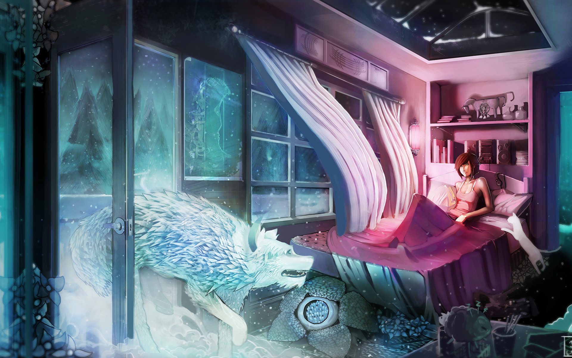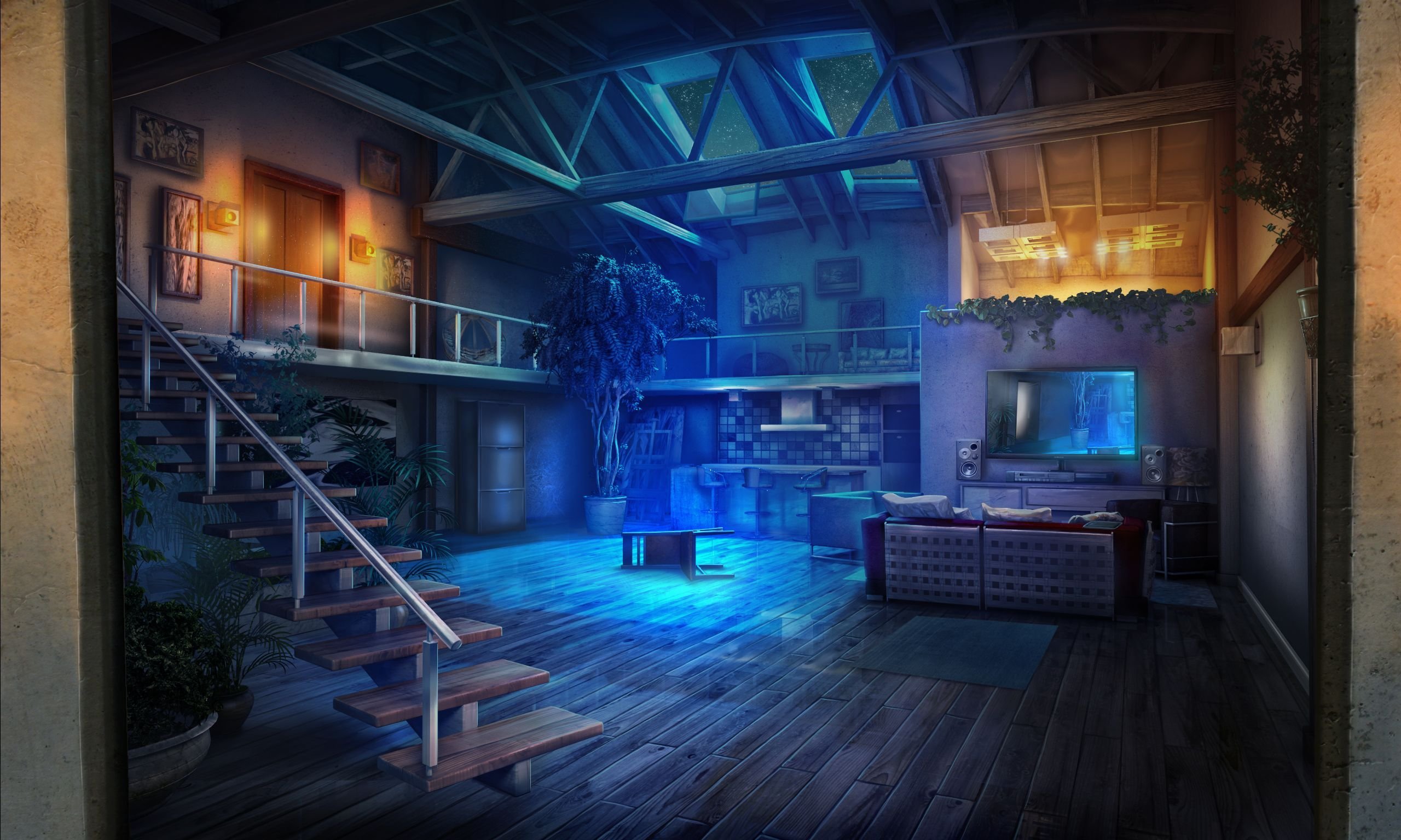 Аниме комната ночью