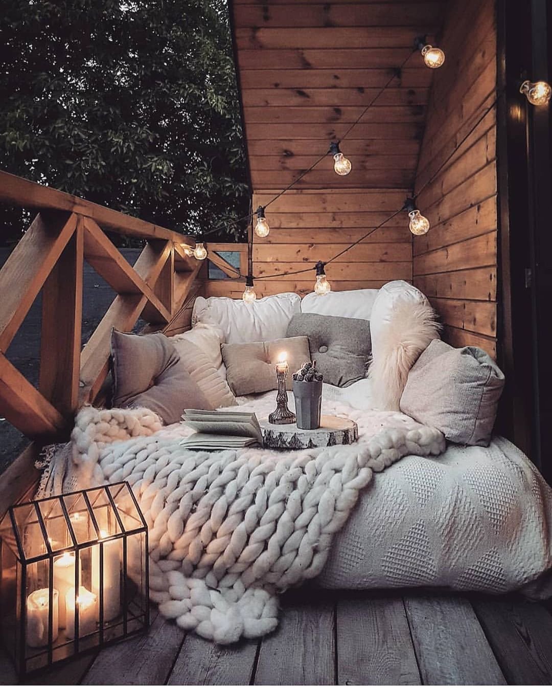 Гирлянда на балконе на потолке