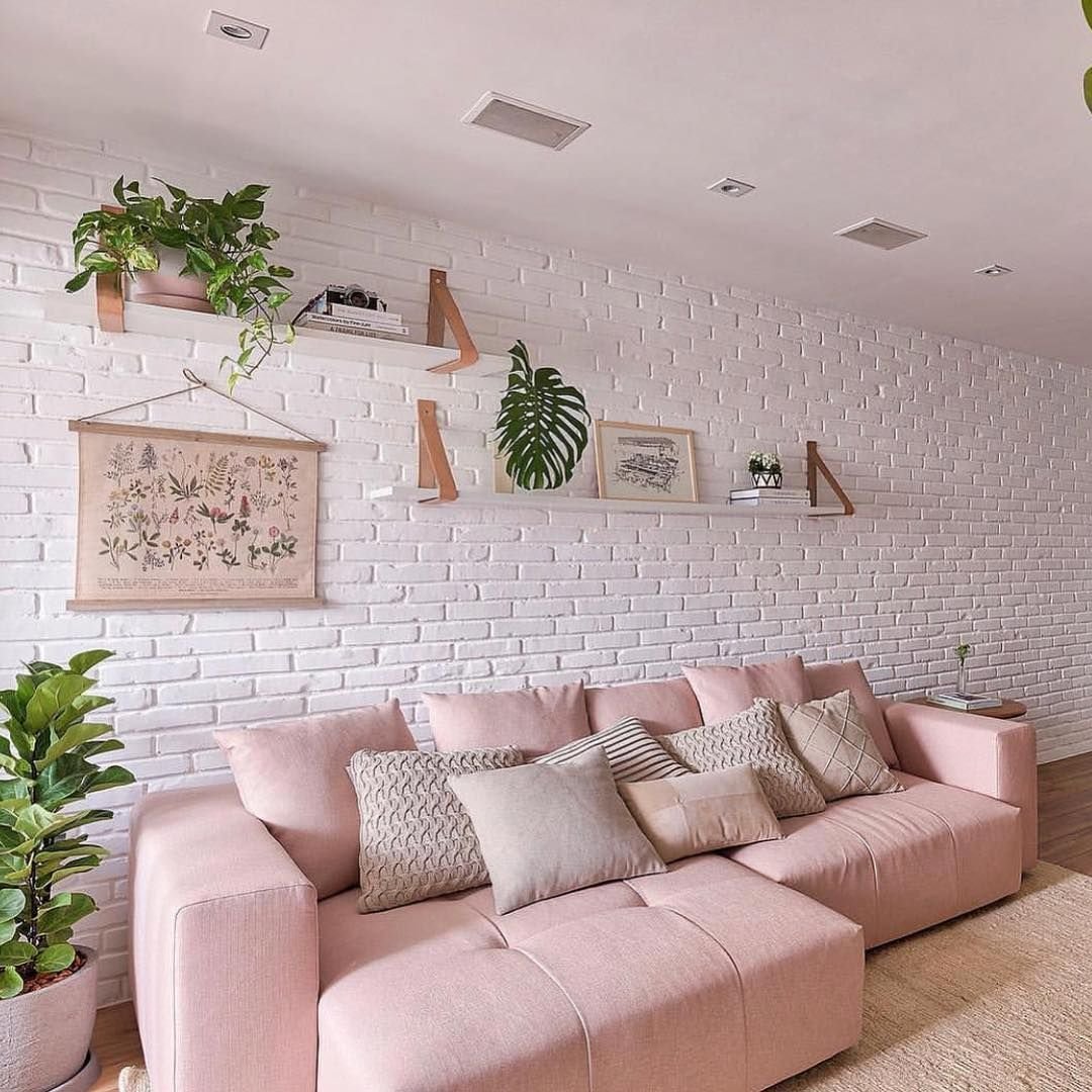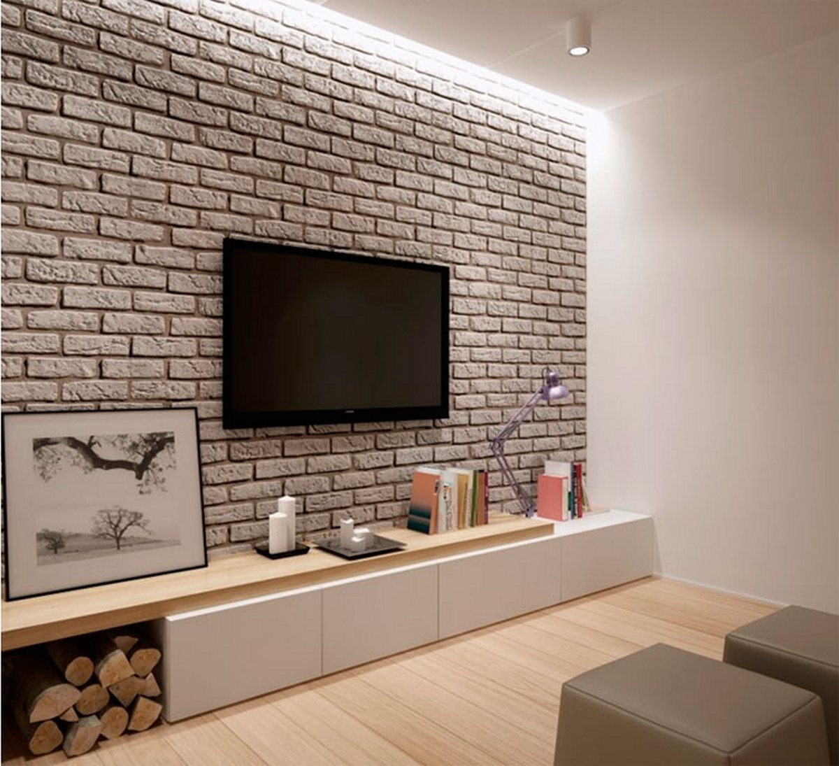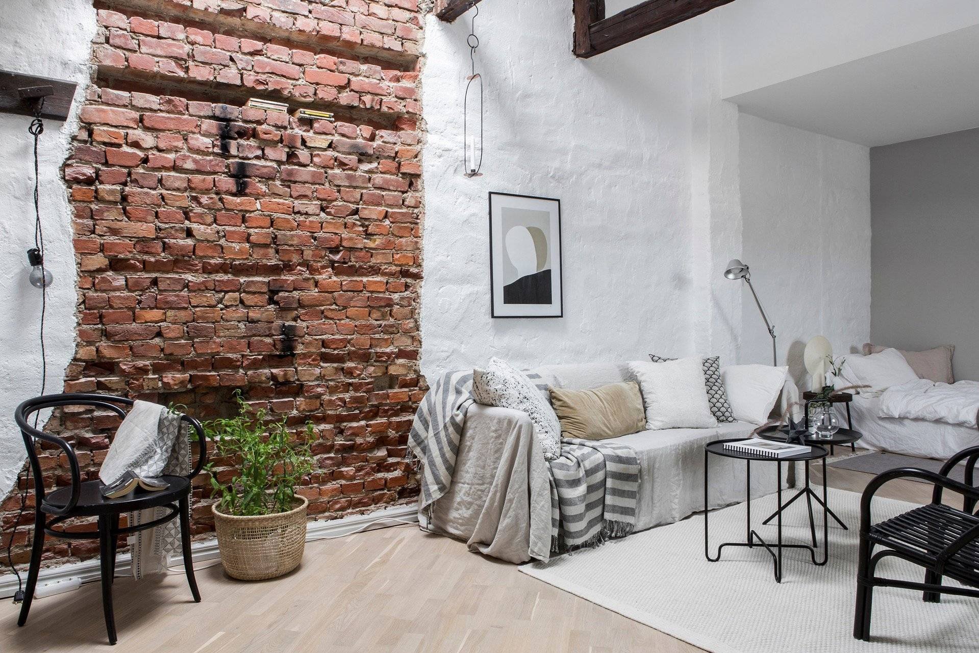 Комната с белой кирпичной стеной