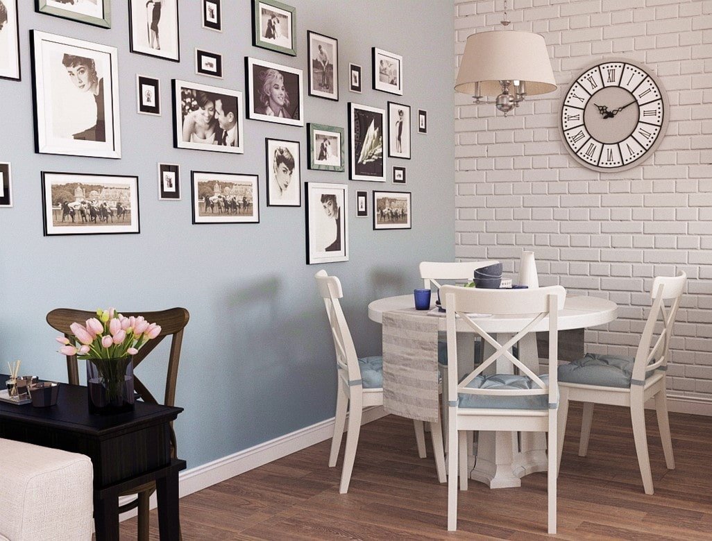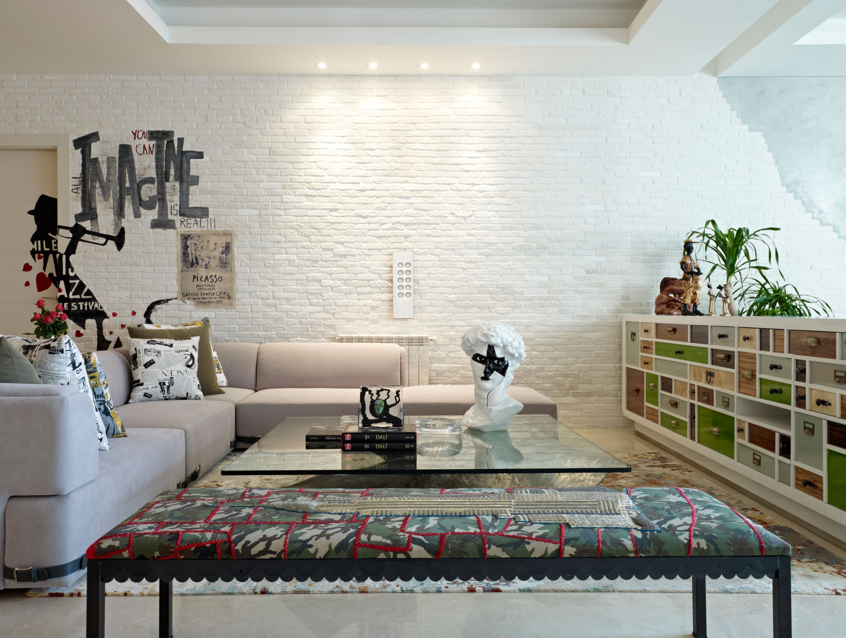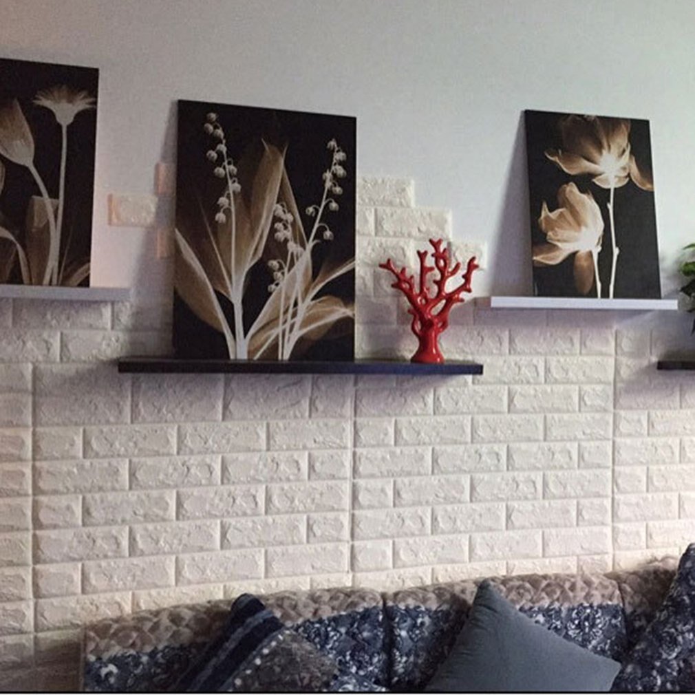 Комната с белой кирпичной стеной