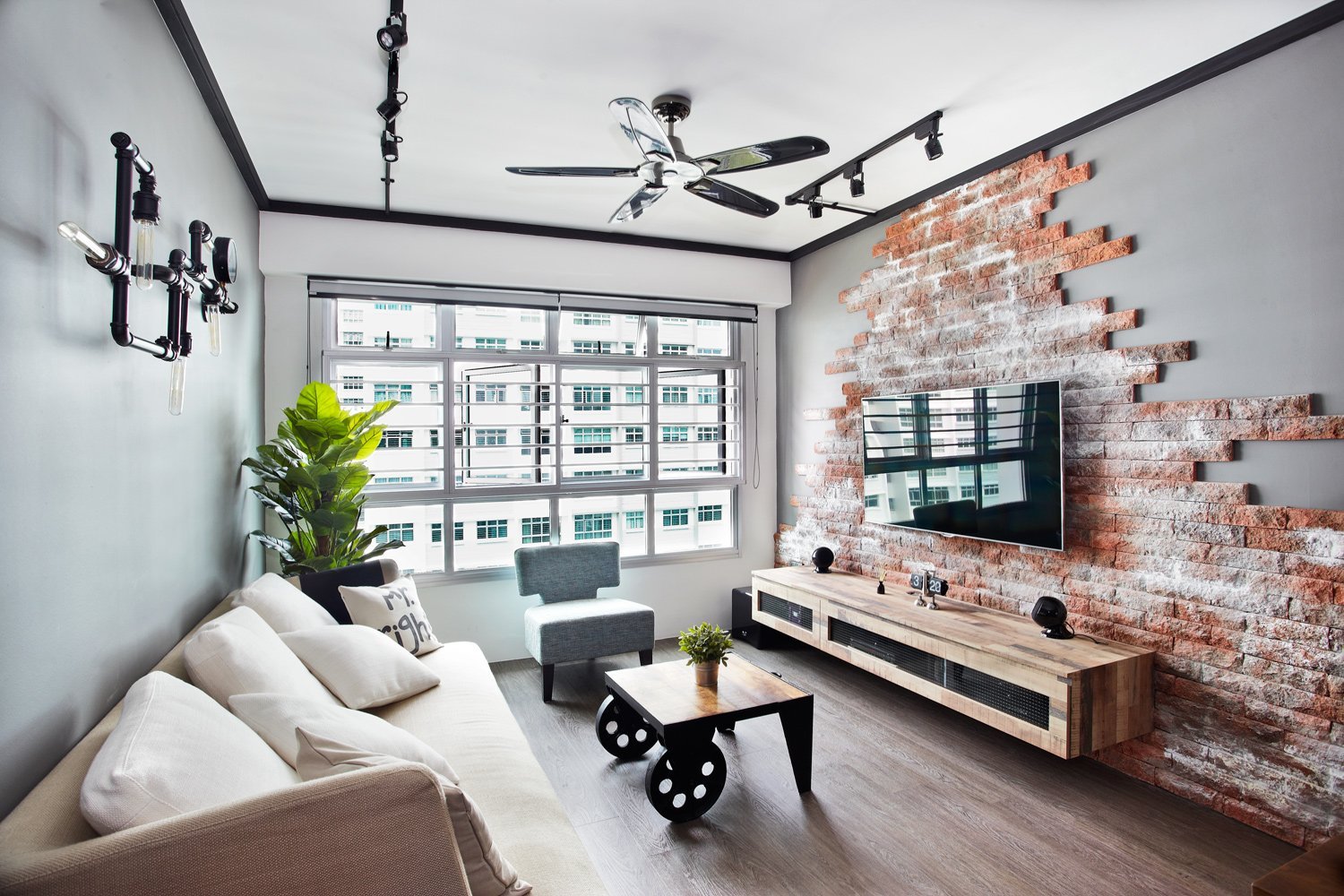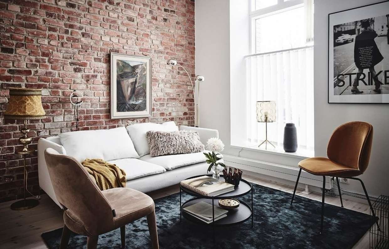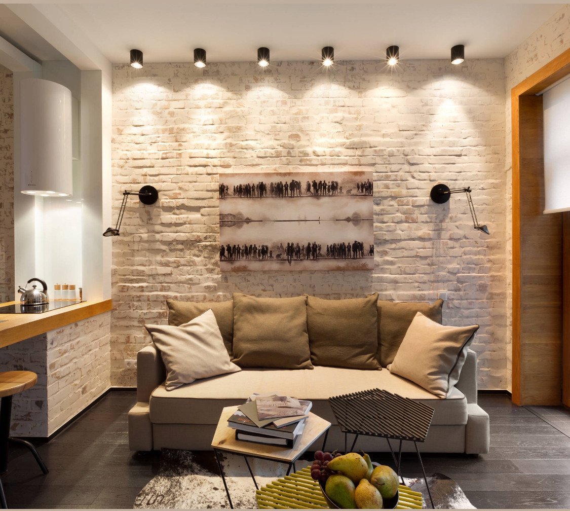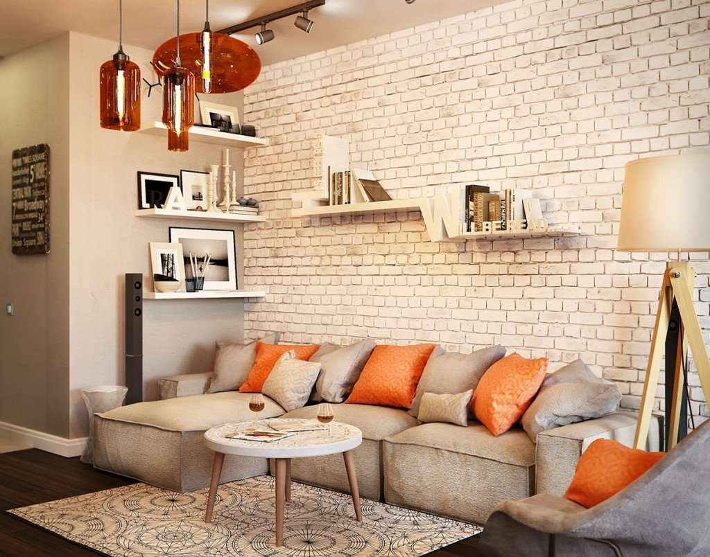Декор кирпичной стены в гостинной