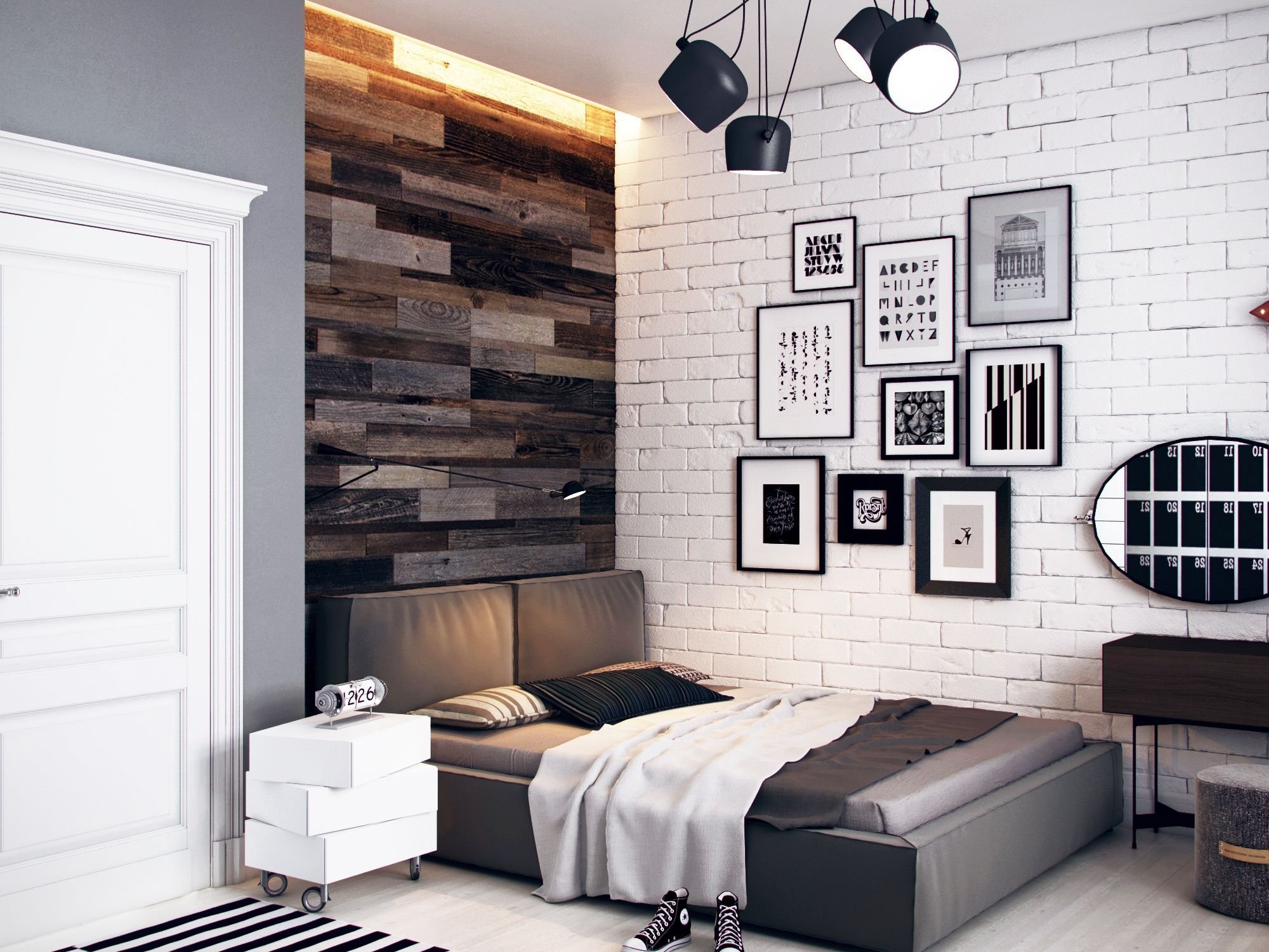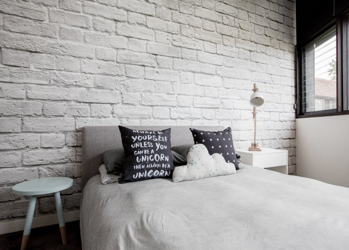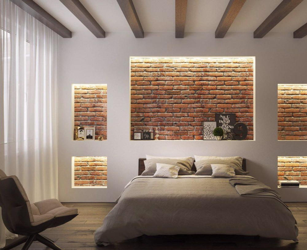 Спальня в стиле лофт белый кирпич