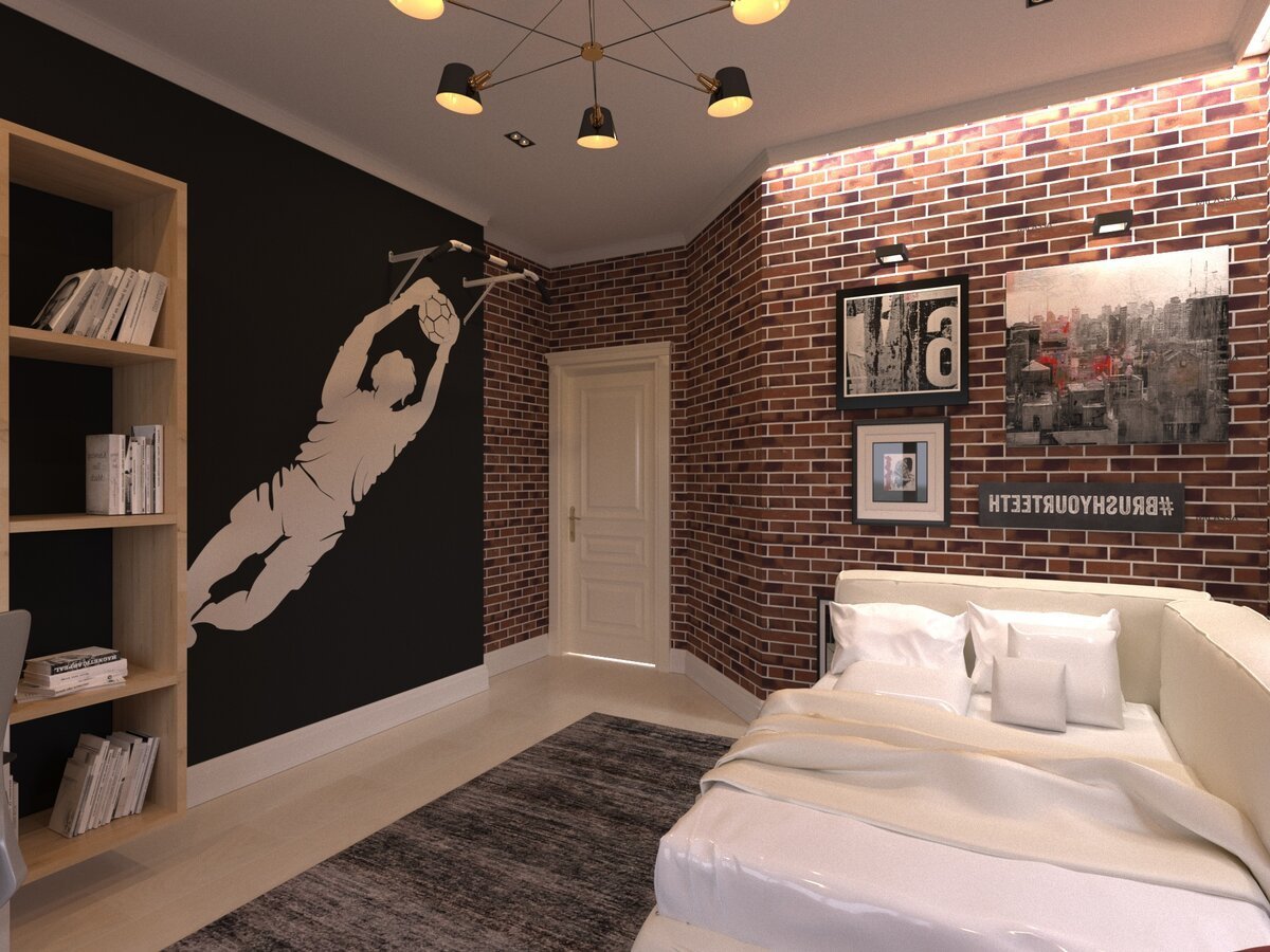 Комната для девочки с кирпичной стеной