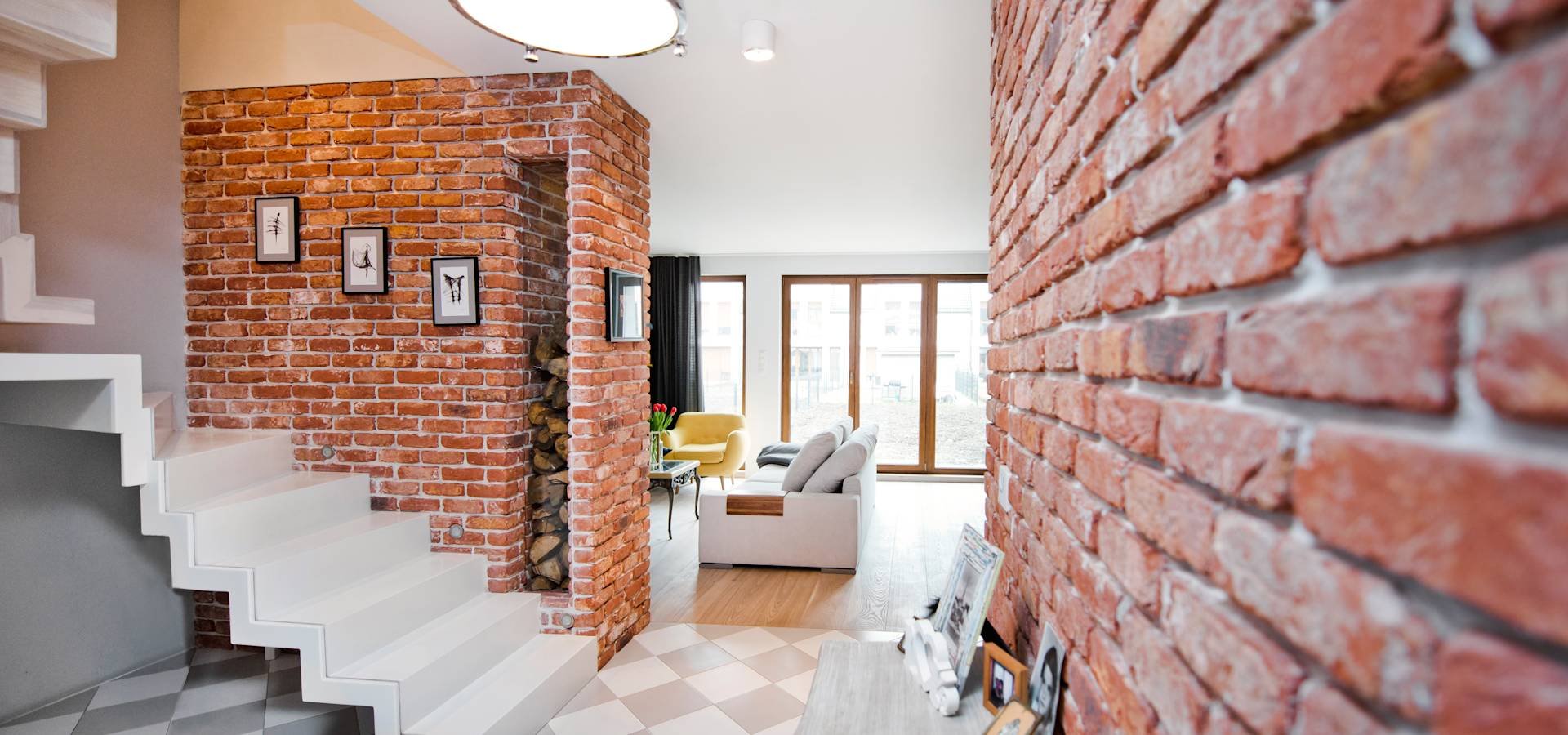 Кирпичная стена в гостиной