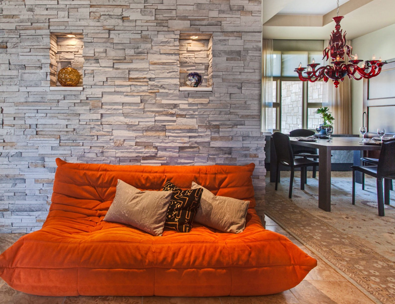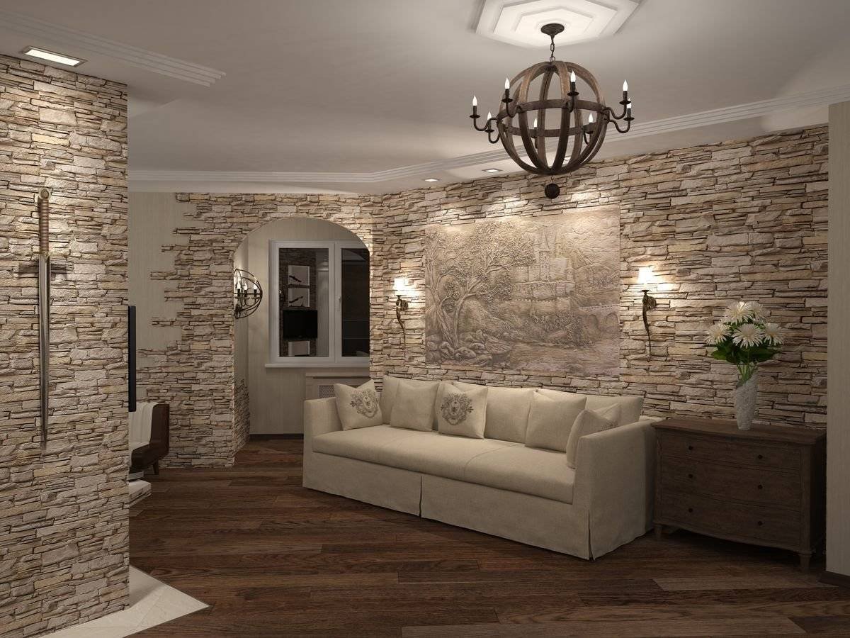 Отделка гостиной декоративным камнем