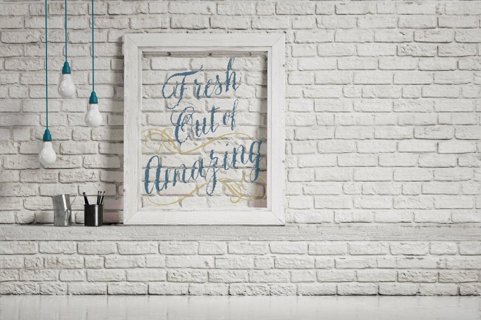 Картина на фоне кирпичной стены