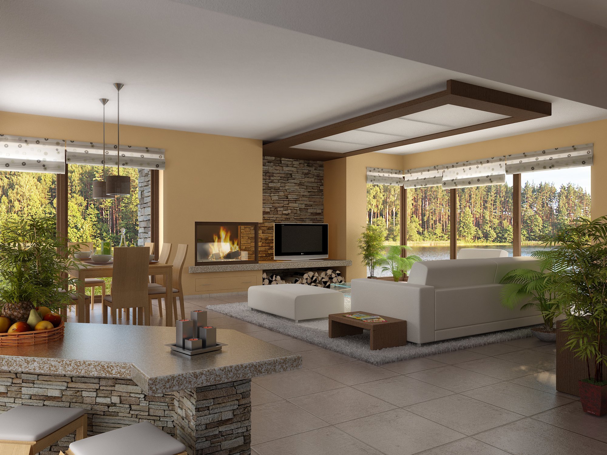 Интерьер загородного одноэтажного дома