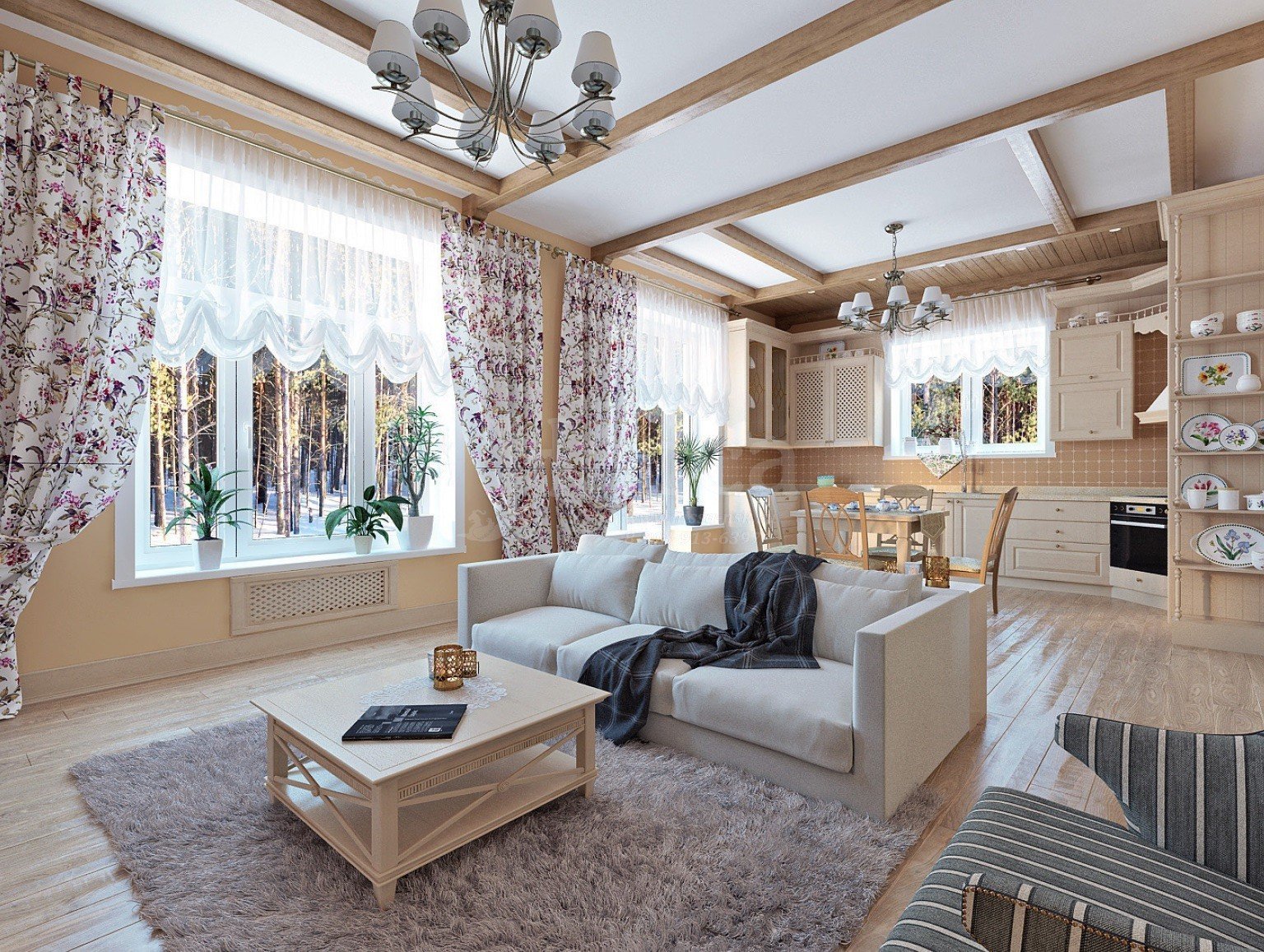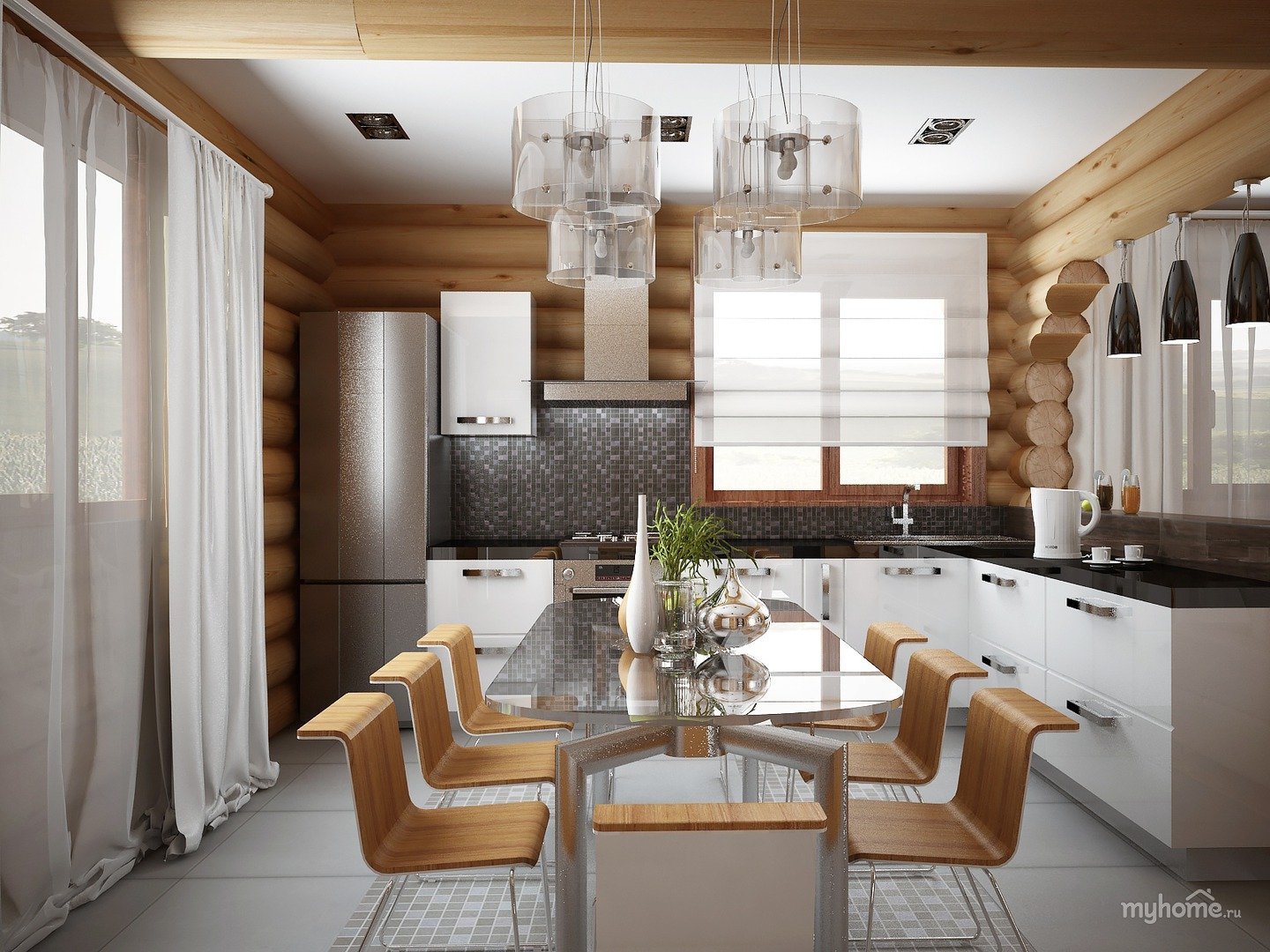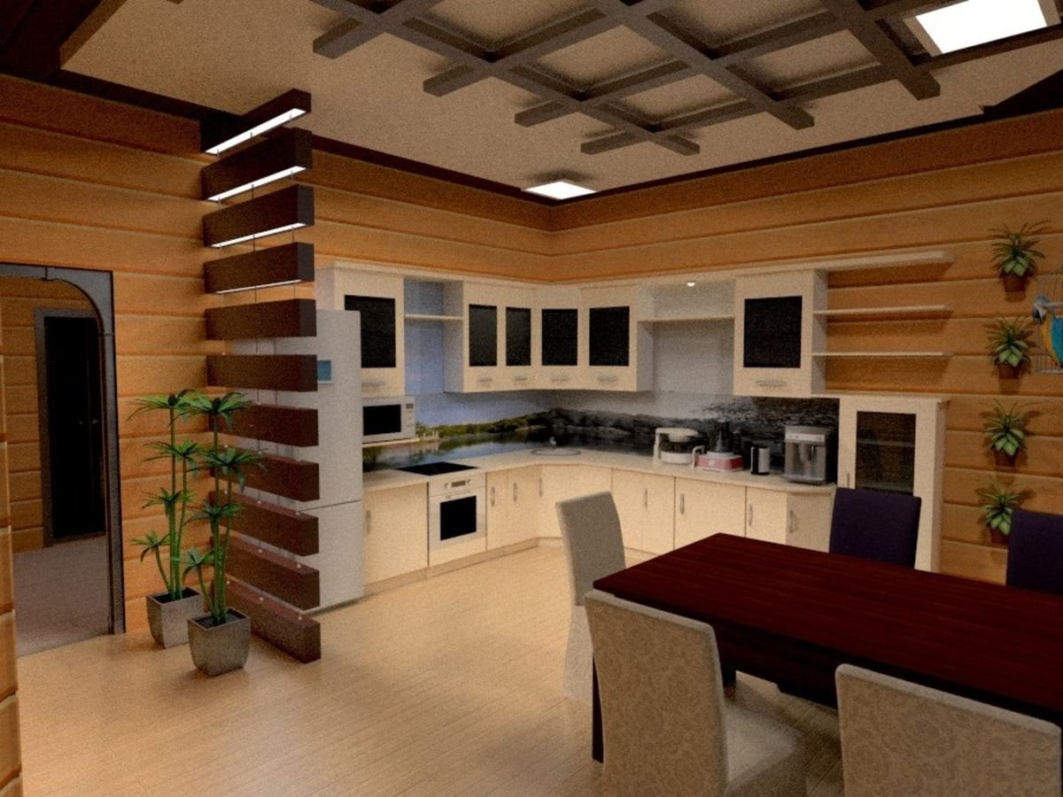 Кухня-гостиная в деревянном доме