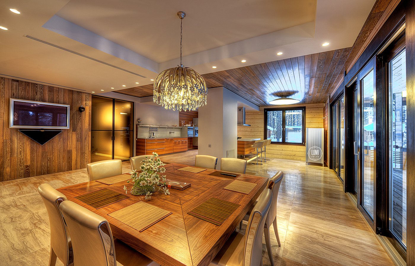 Кухня-гостиная в доме с выходом на террасу