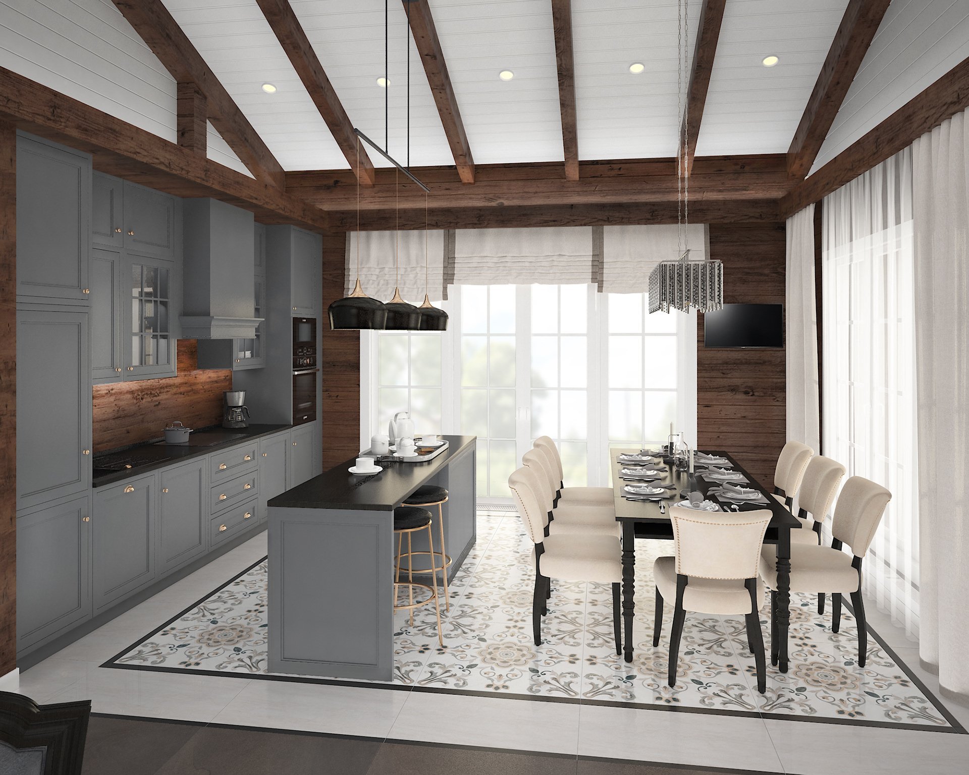 Кухня гостиная в загородном доме
