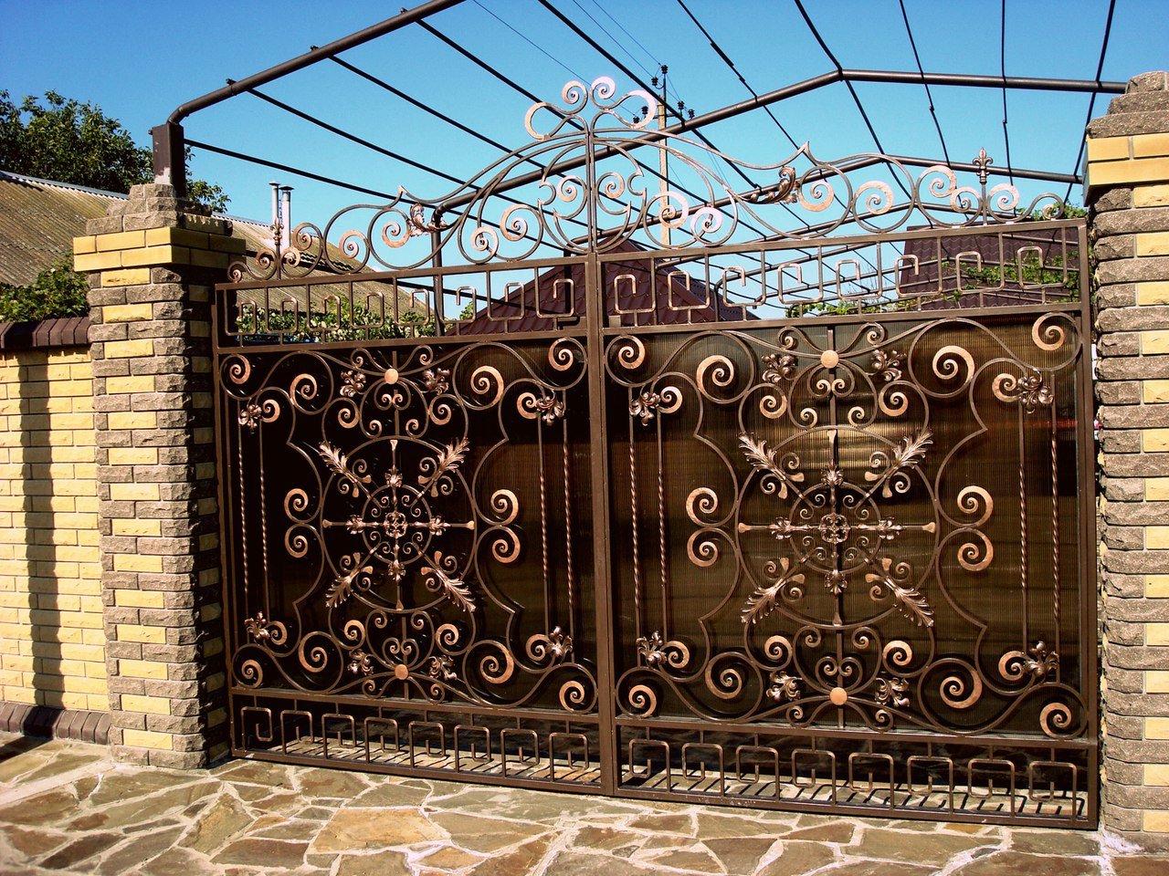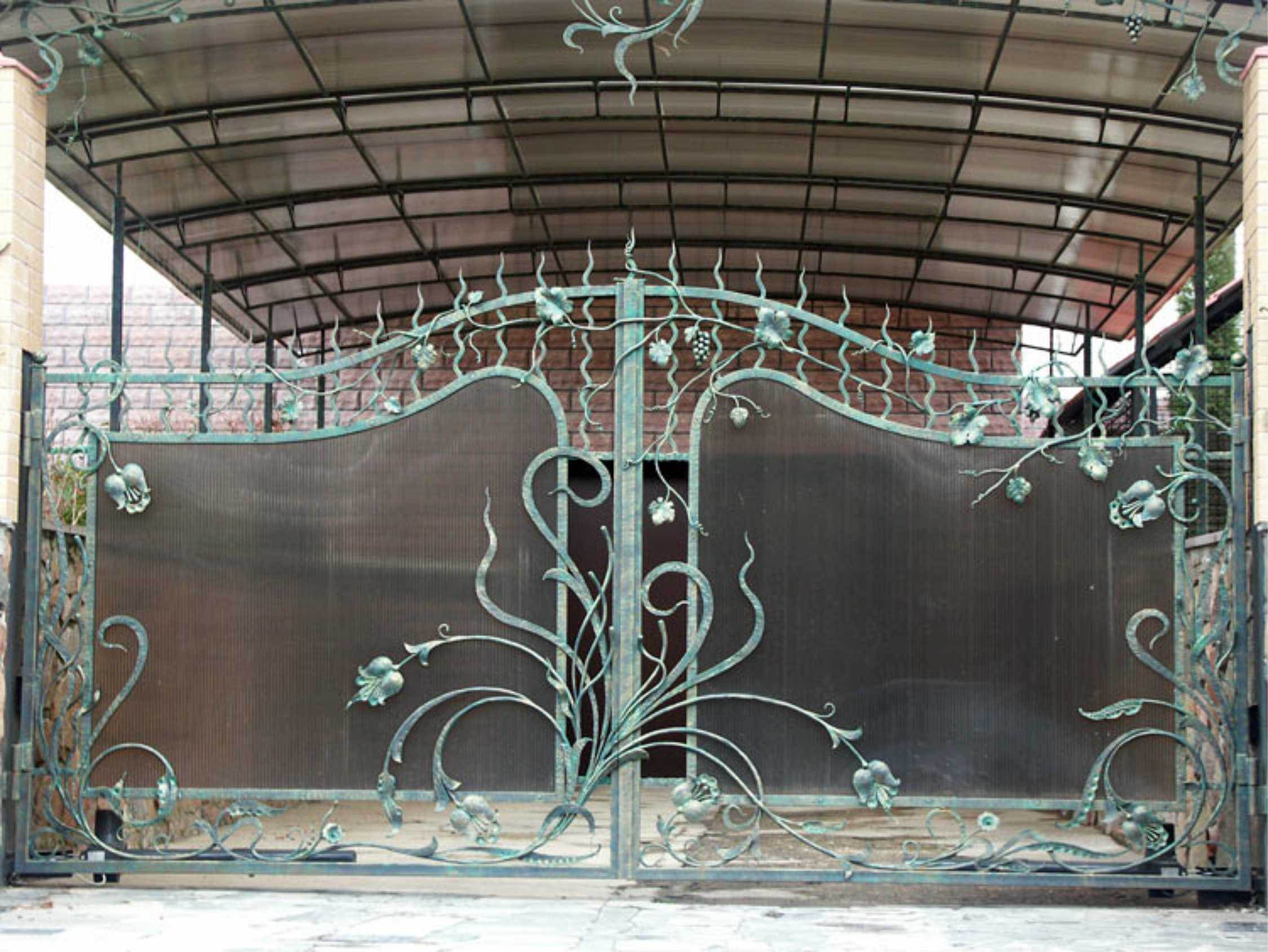 Кованые ворота из поликарбоната