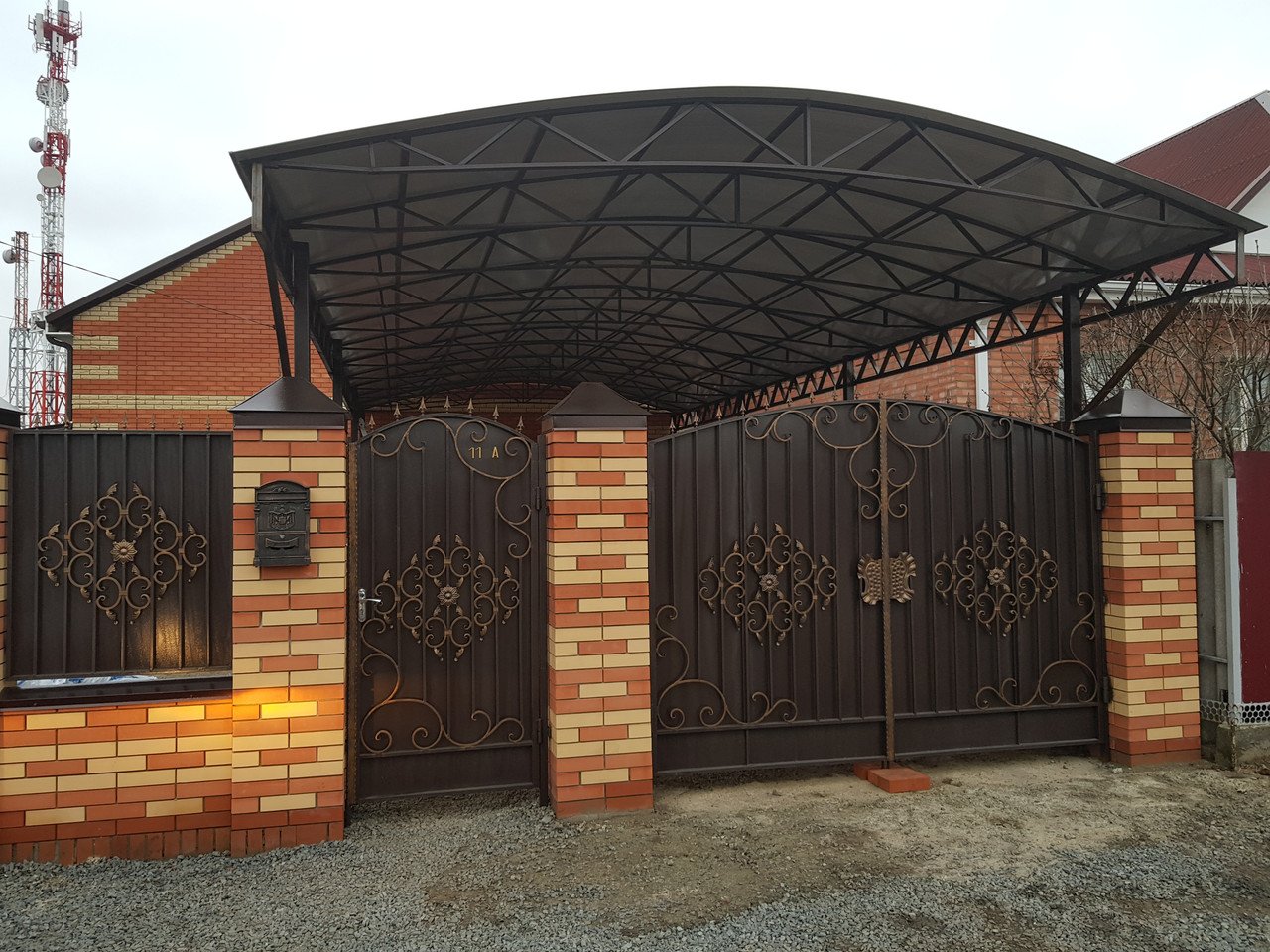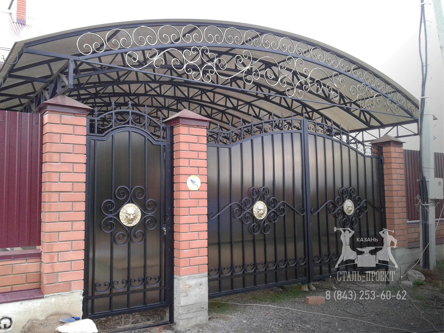 Кованые ворота с навесом