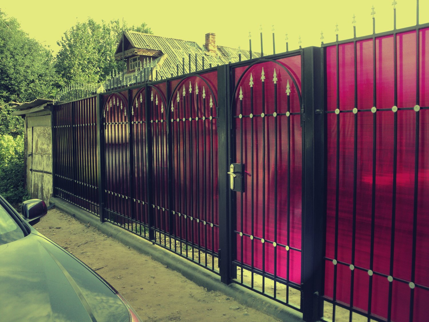 Кованый забор с поликарбонатом