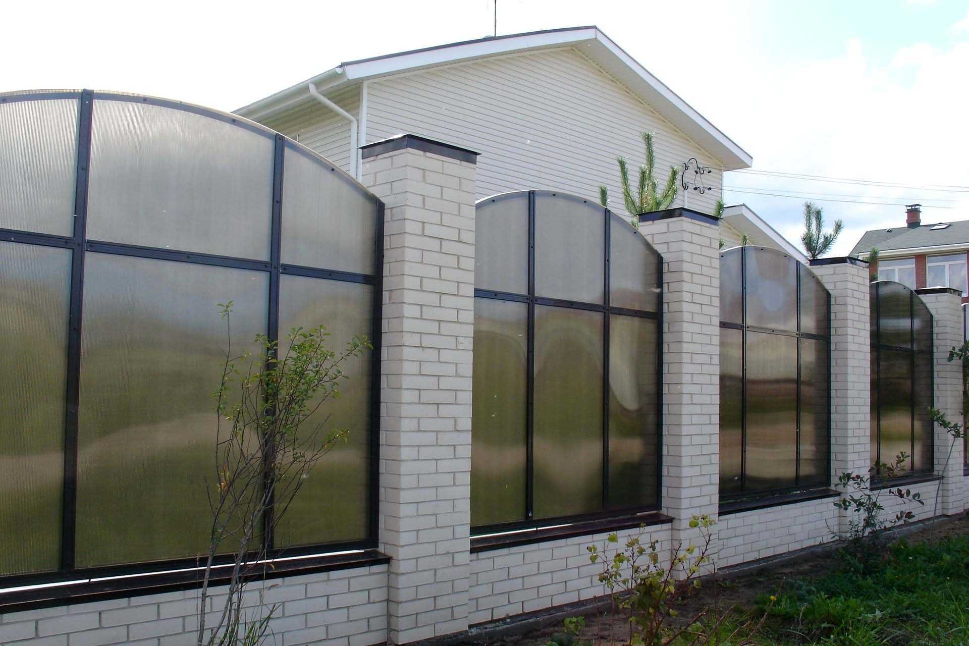 Кирпичный забор с поликарбонатом