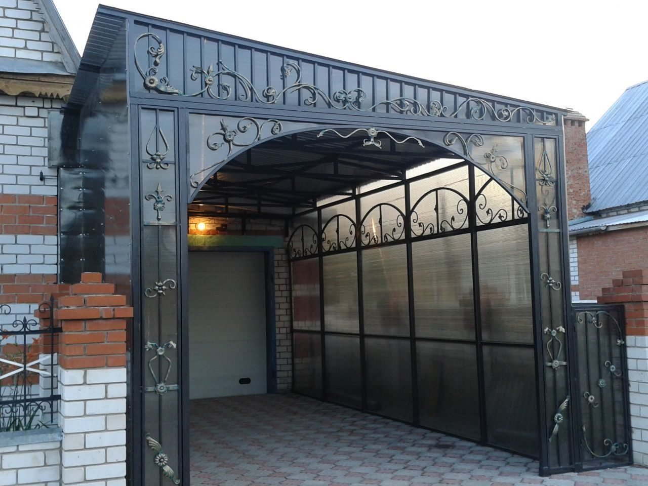 Ворота из поликарбоната с элементами ковки