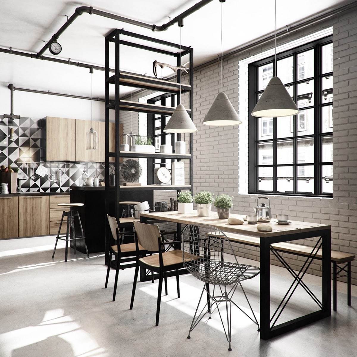 Кухня лофт металл дерево