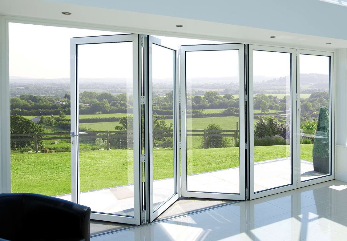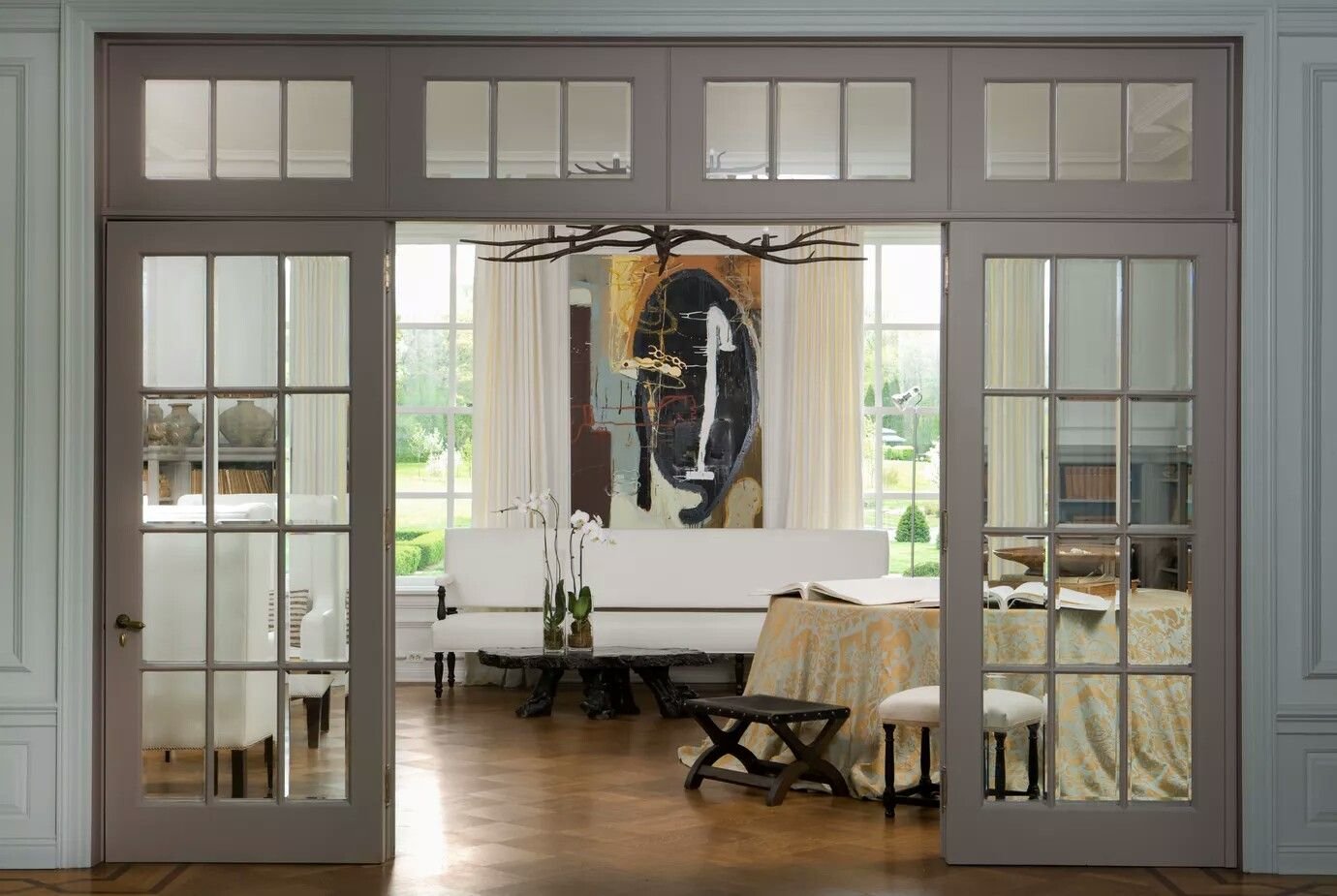 Французские раздвижные двери с фрамугой