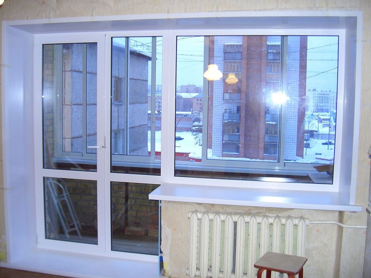 Остекление лоджий пластиковыми окнами с дверью