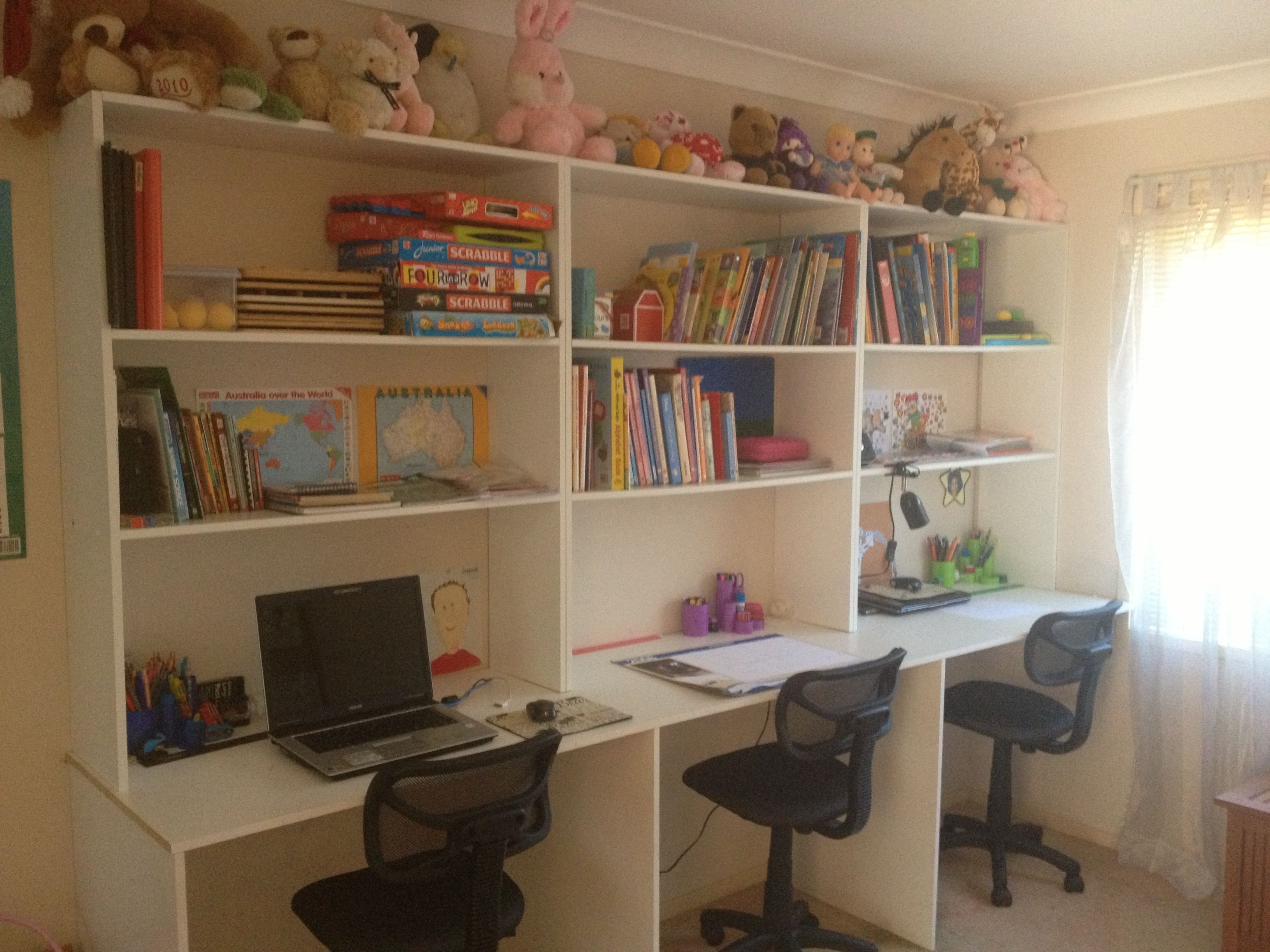 Письменный стол для троих детей вдоль окна