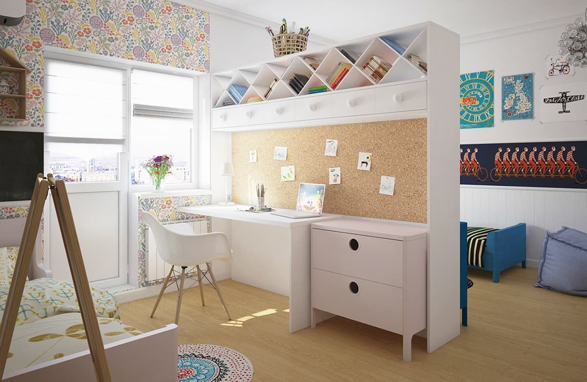 Рабочие место в детской для двоих детей