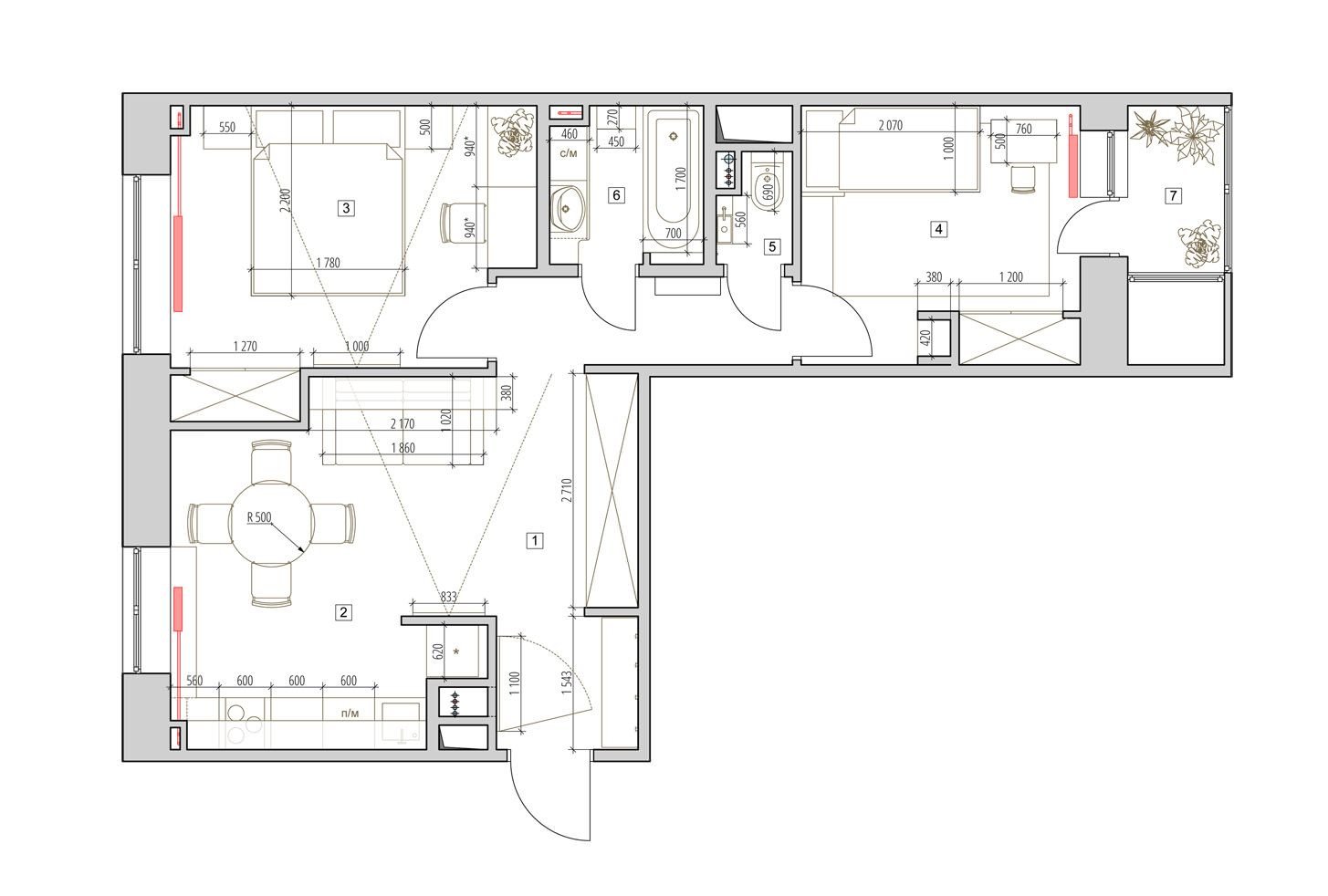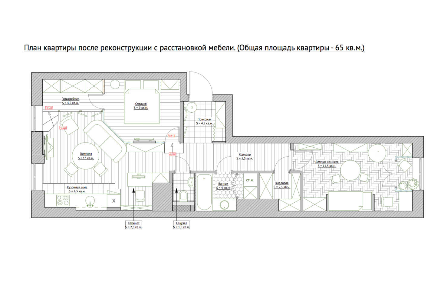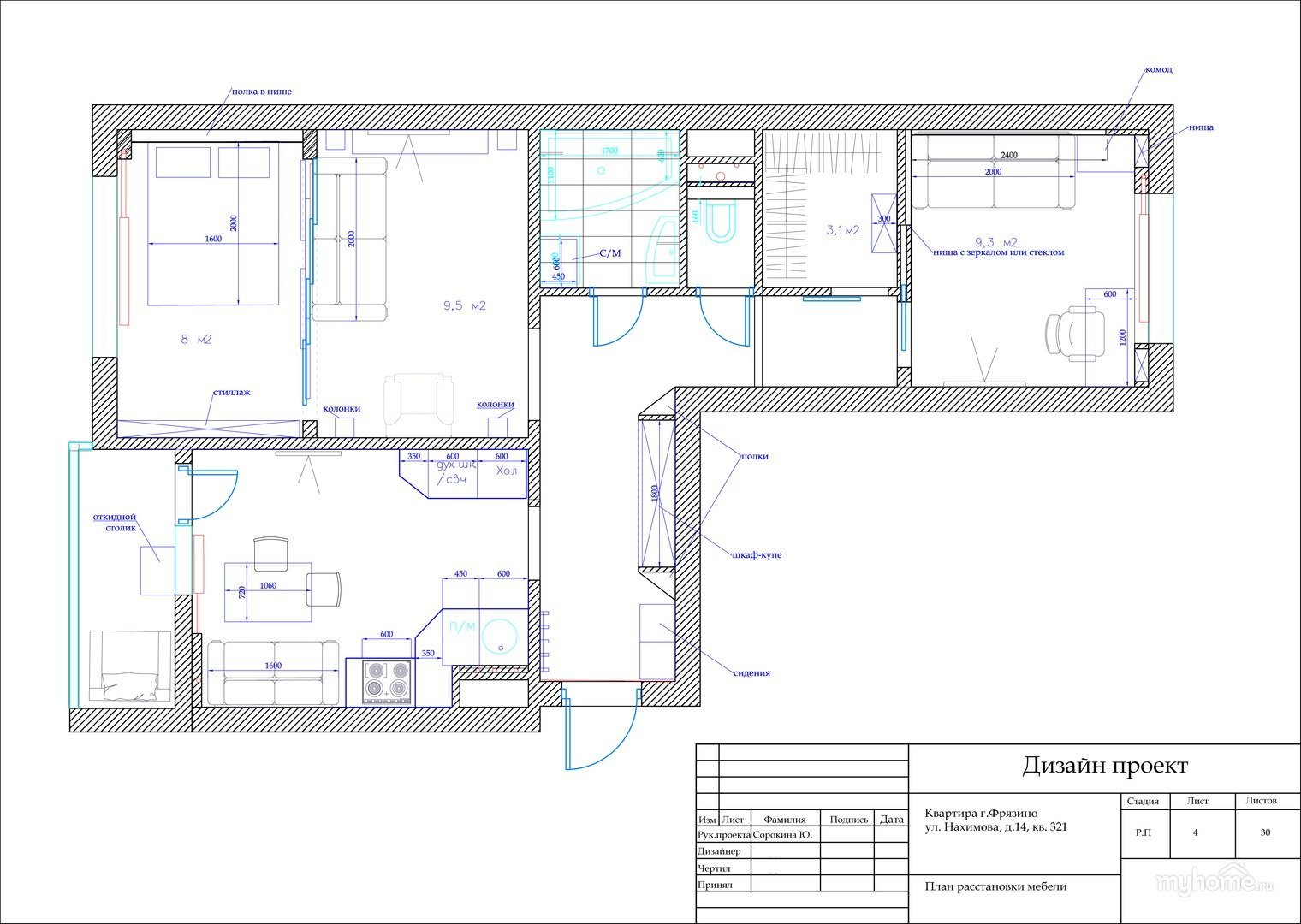 Перепланировка трехкомнатной квартиры 80 кв.м