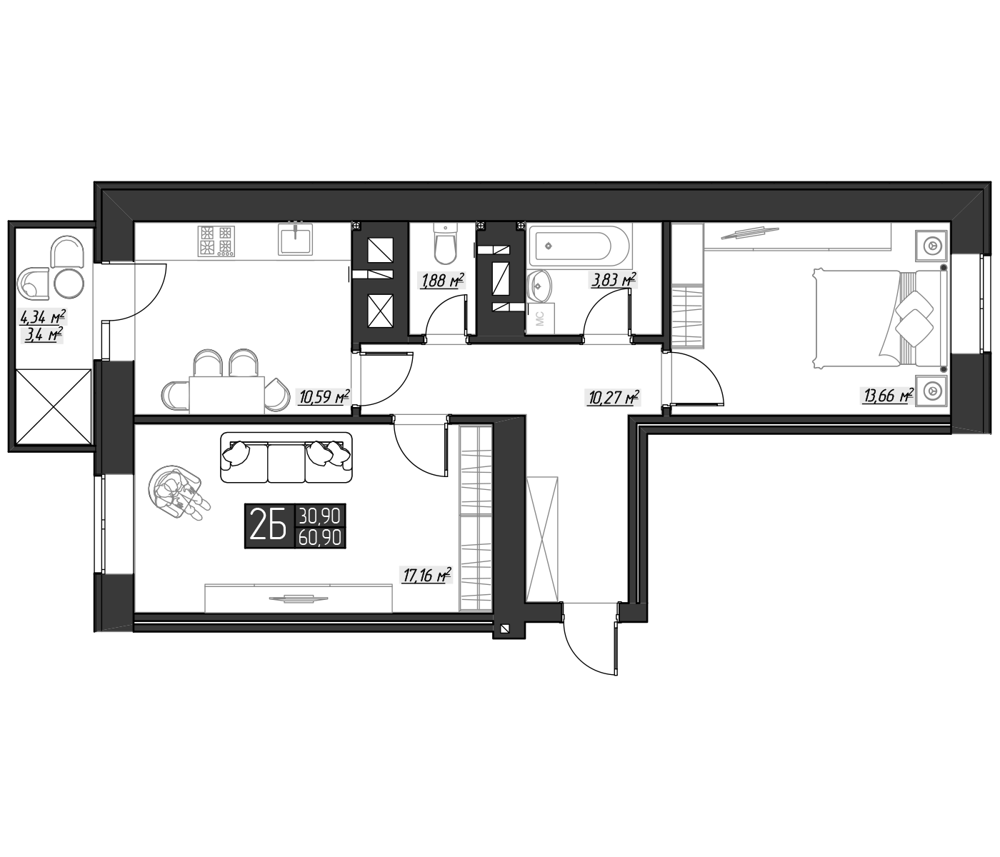 Планировка двухкомнатной квартиры 60 кв.м распашонка