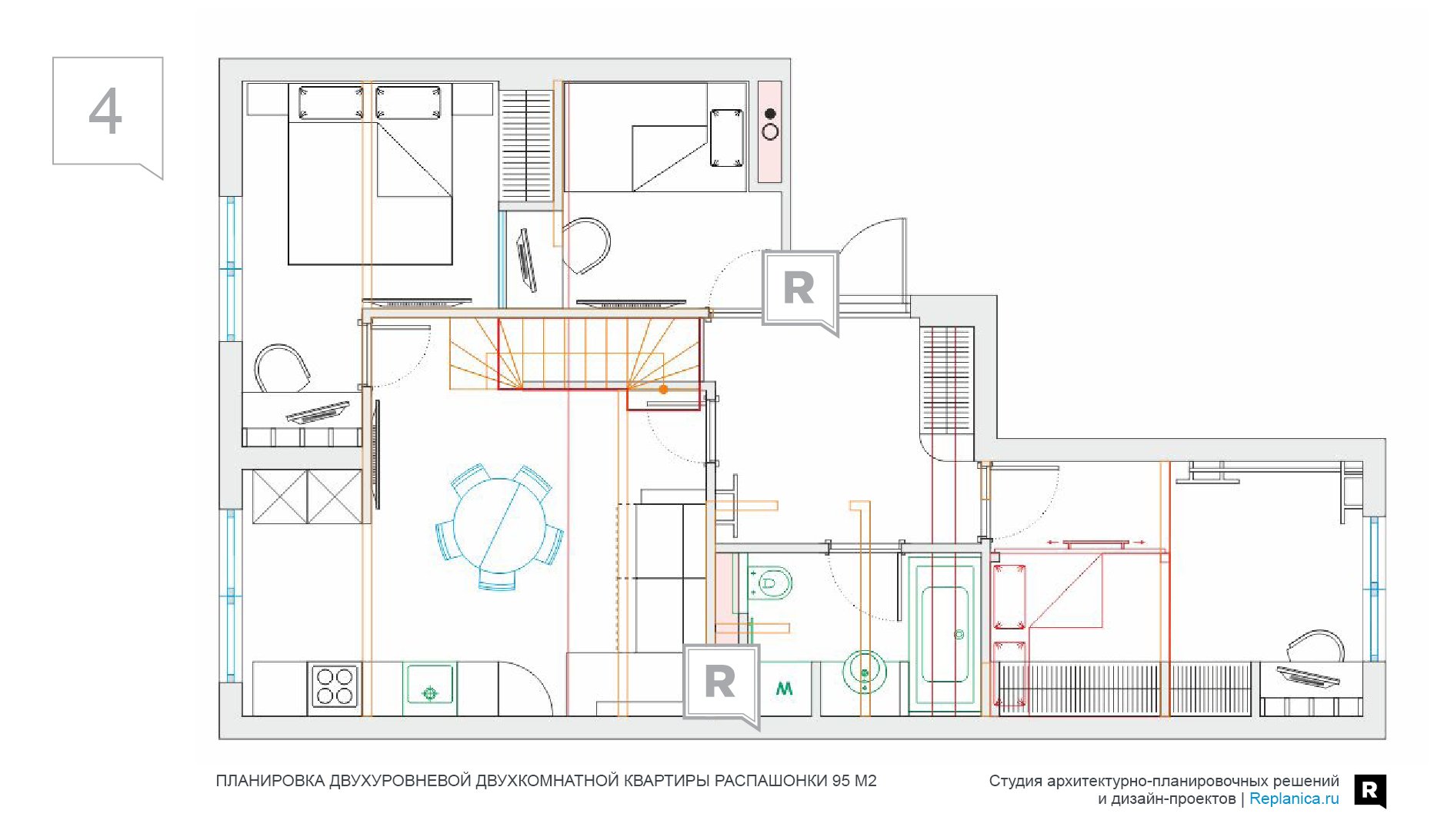 Планировка двухкомнатной квартиры 56 кв.м распашонка