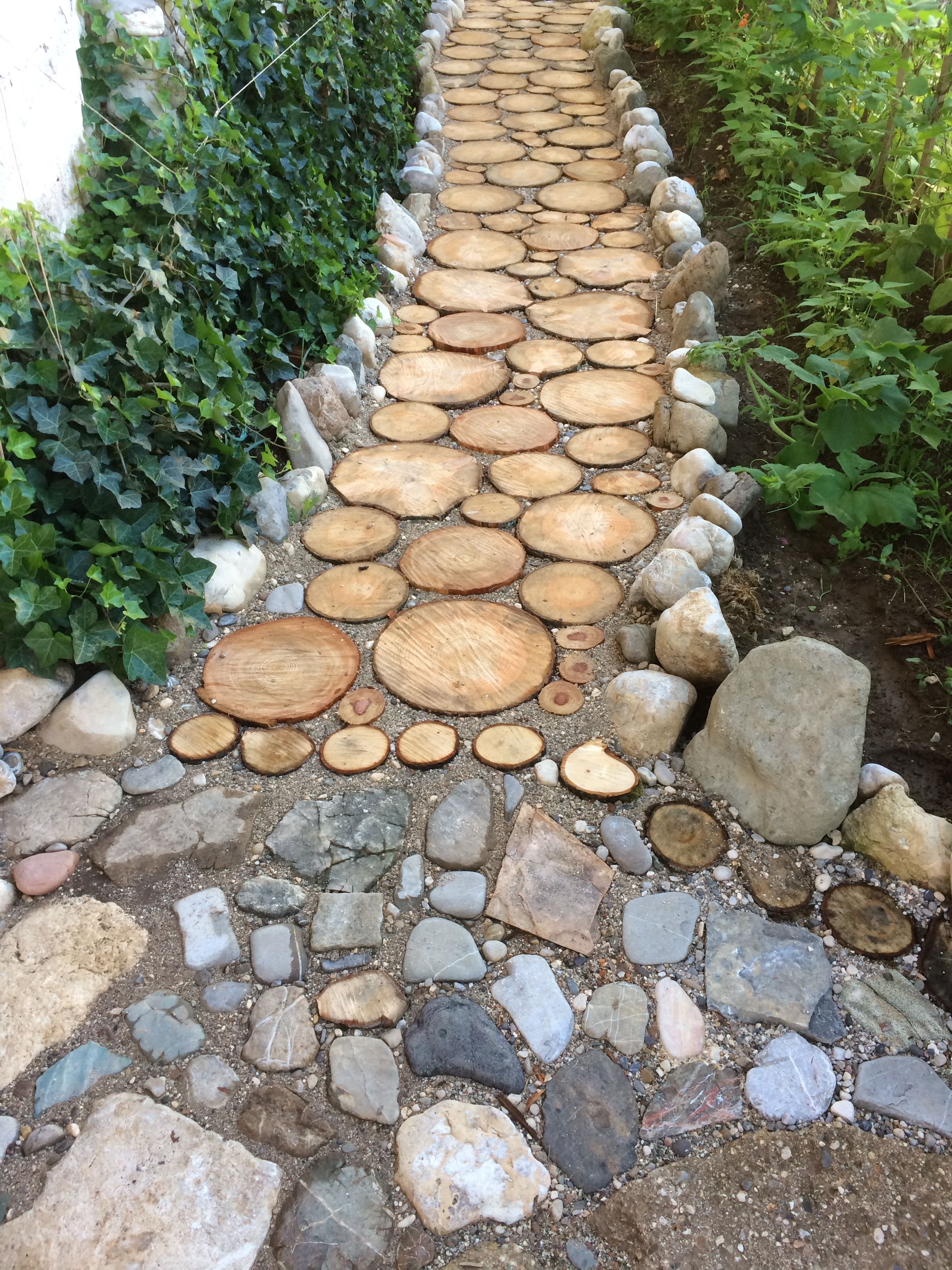 Дорожки в саду из спилов и камней