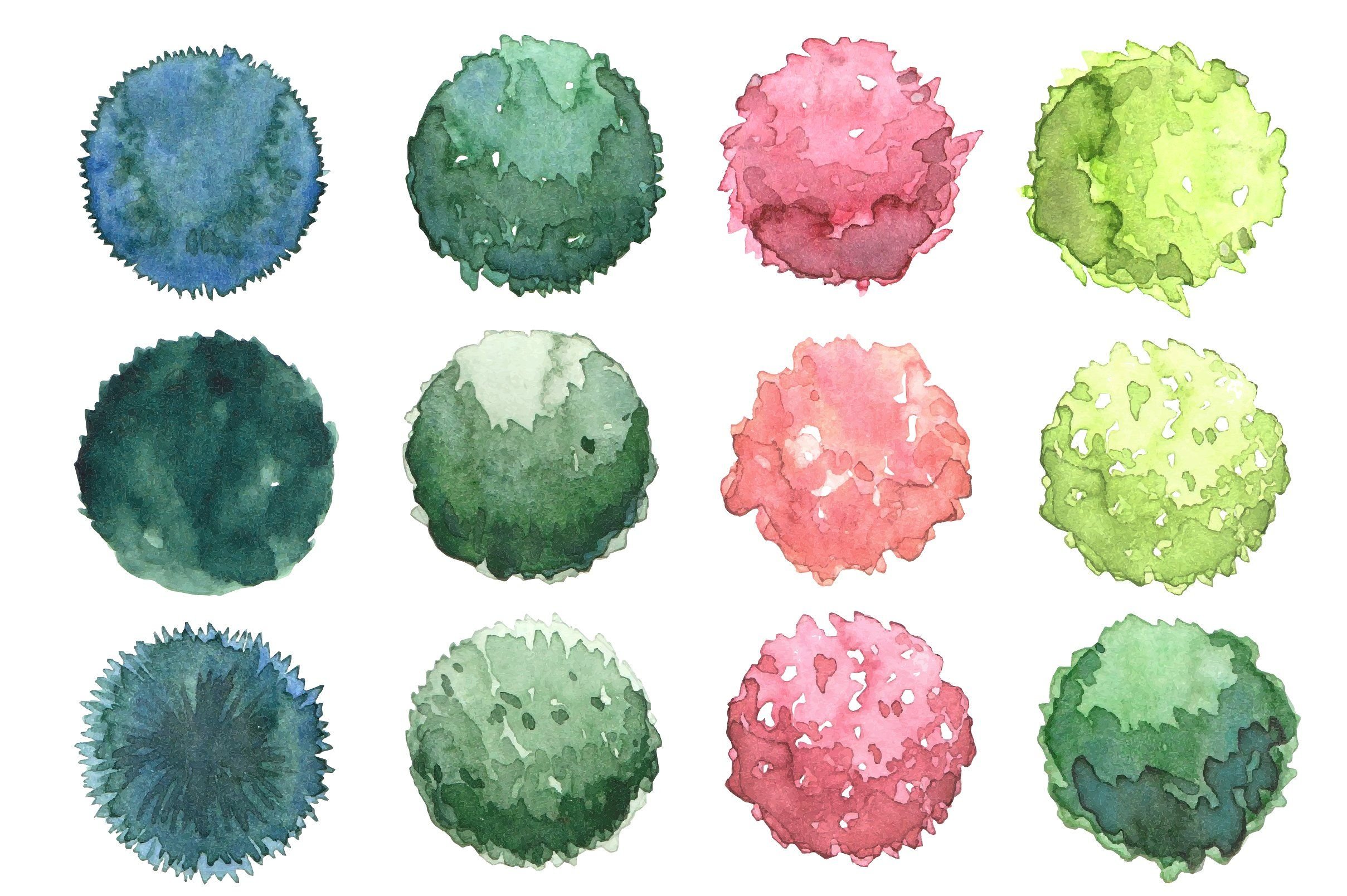 Акварельные деревья вид сверху
