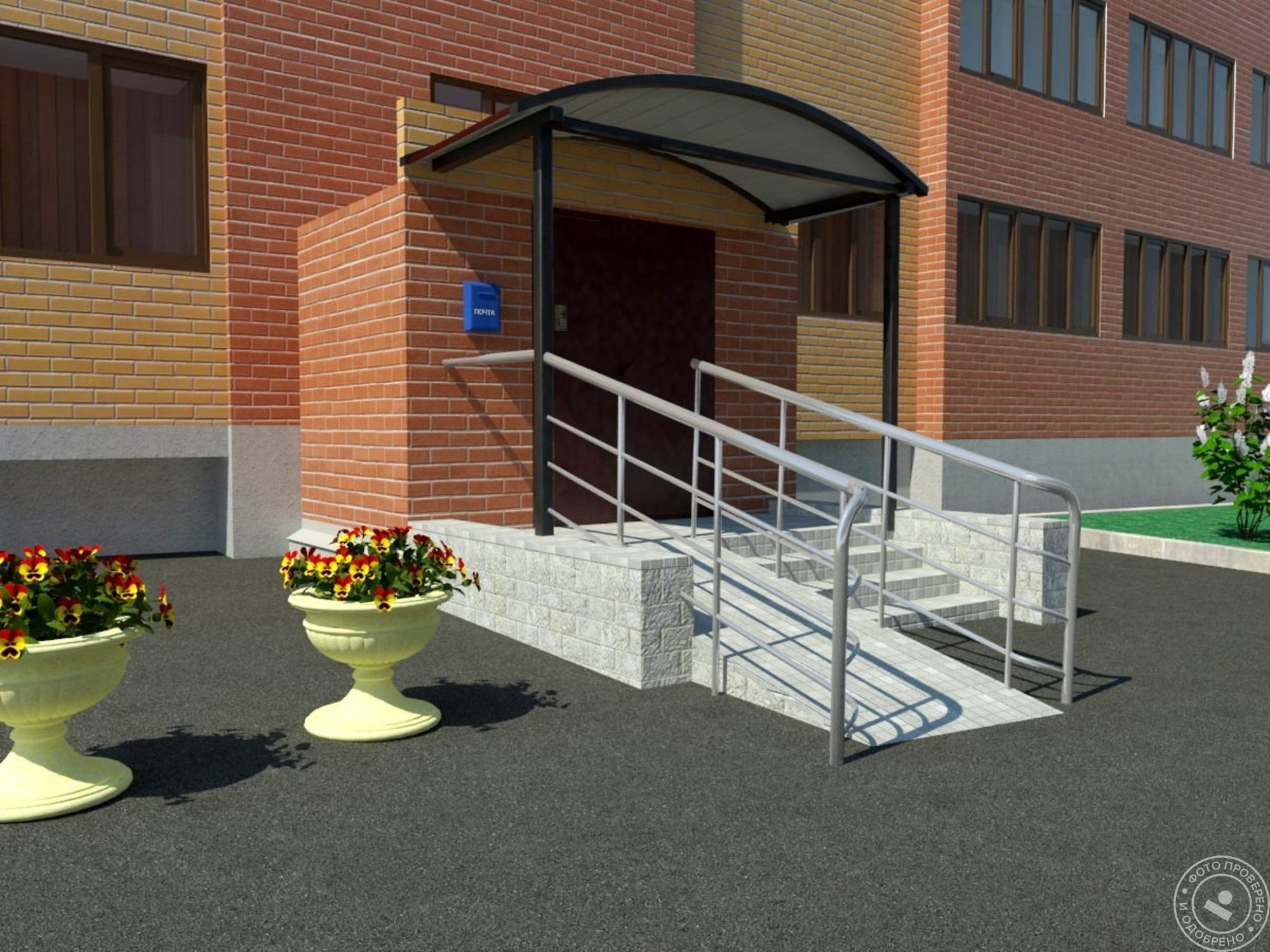 Крыльцо с навесом для офисного здания