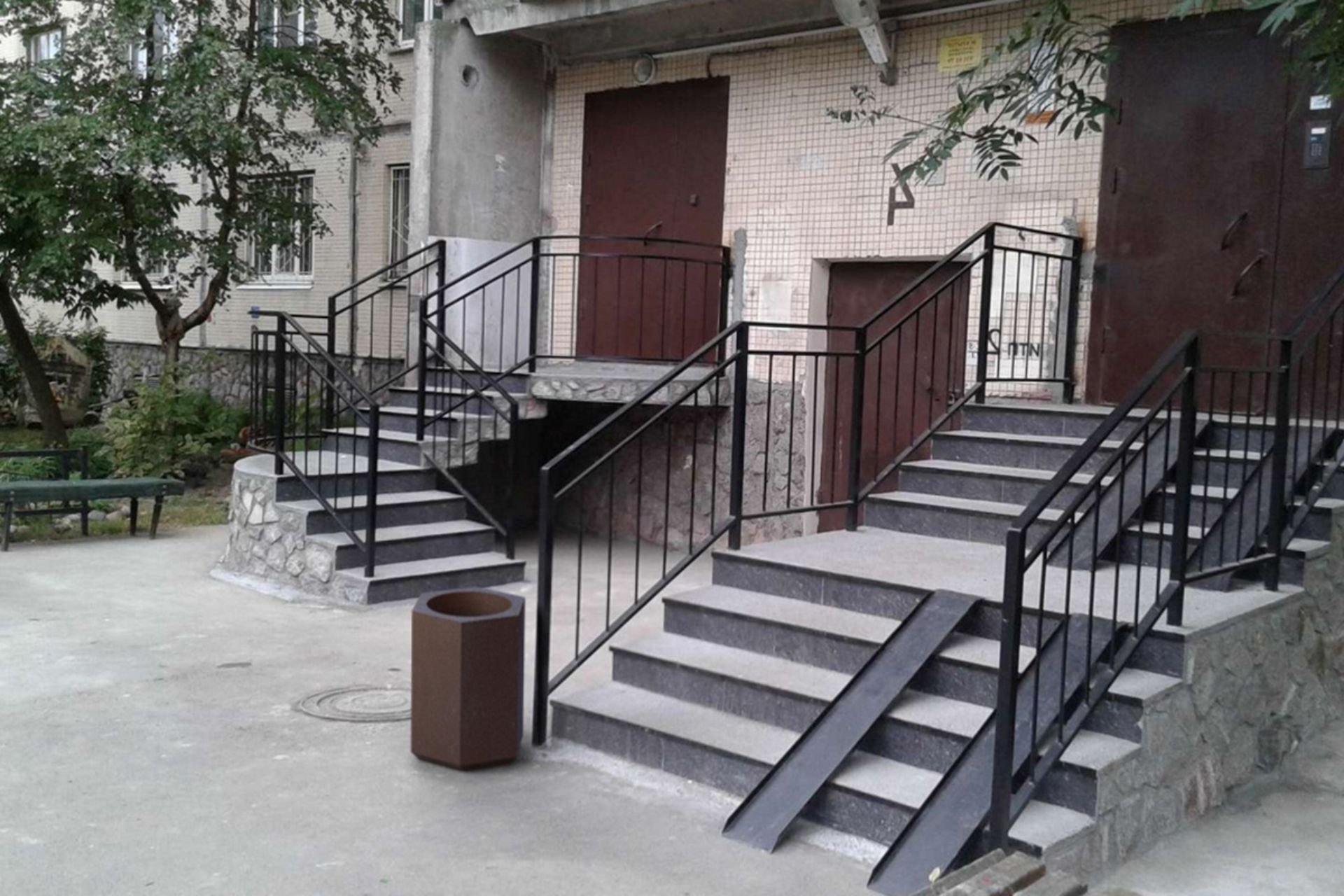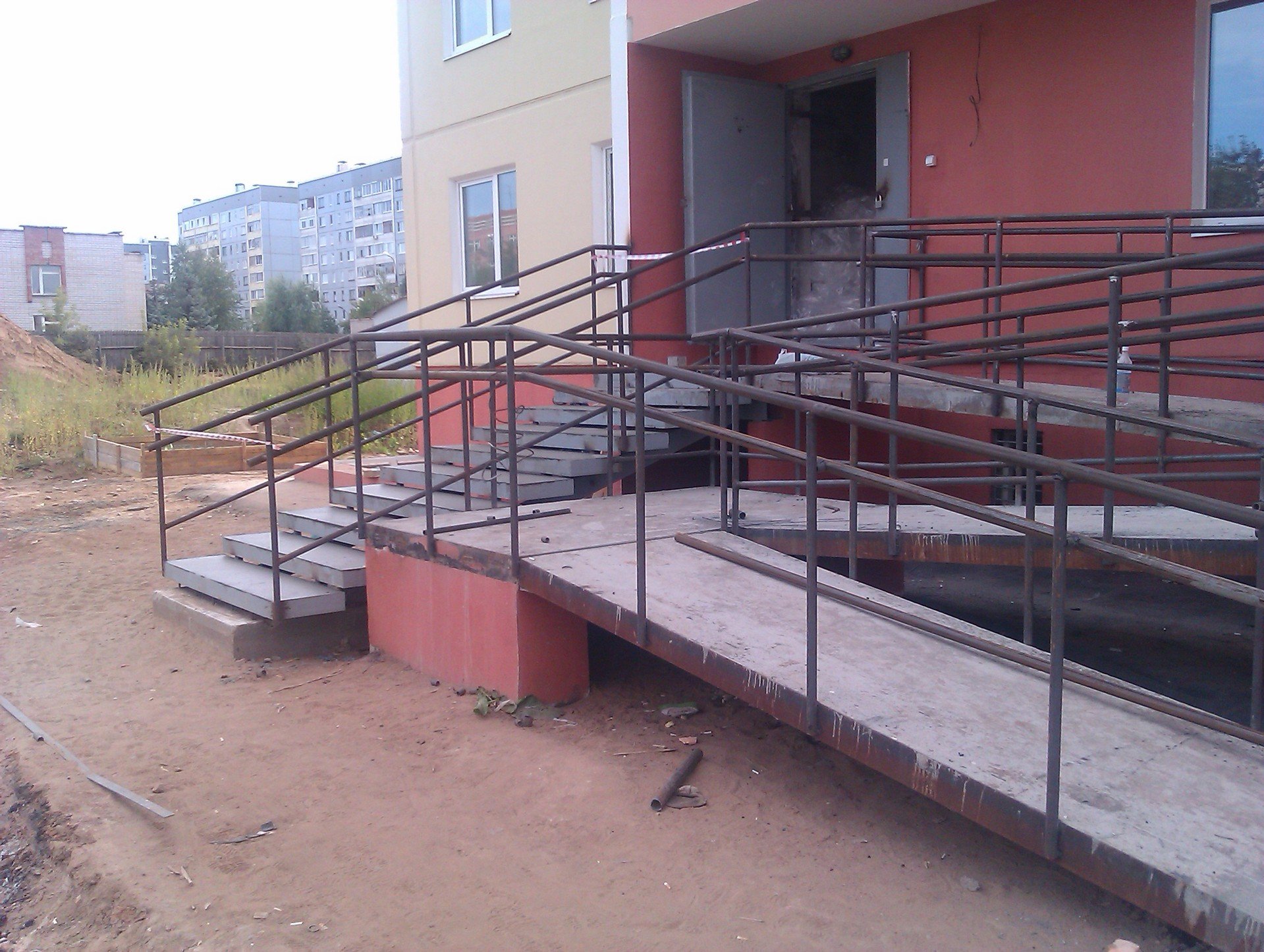 Металлическая лестница с пандусом